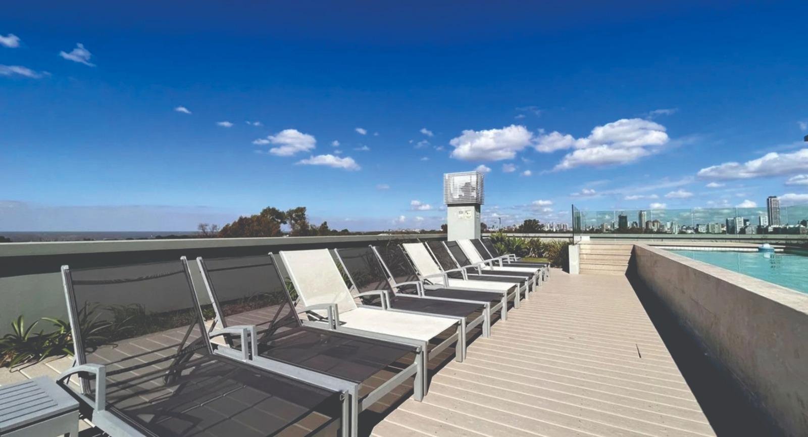 En el piso 9 se encuentran las amenities SUM laundry gim parrilla pileta climatizada con nado contracorriente y solarium