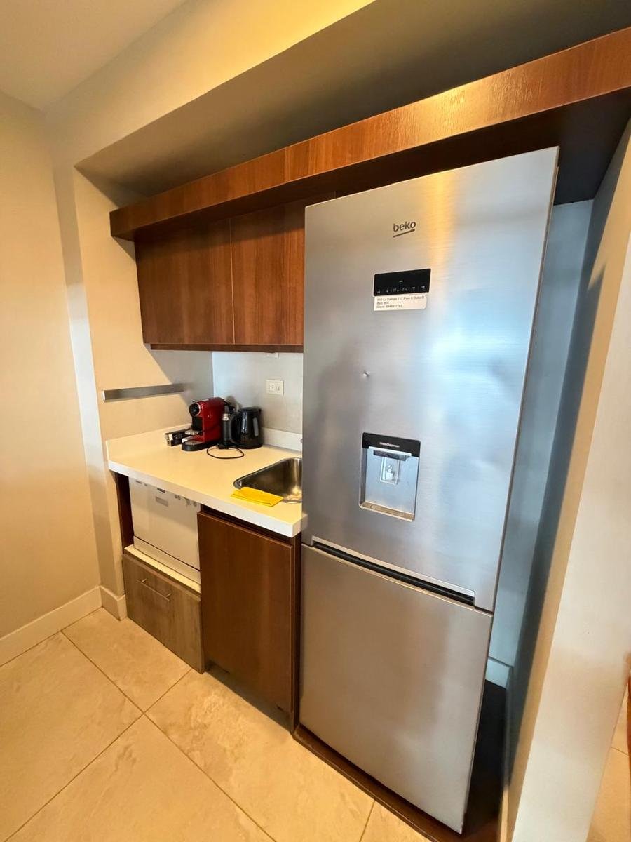Cocina abierta integrada , con barra desayunadora y anafe electrico