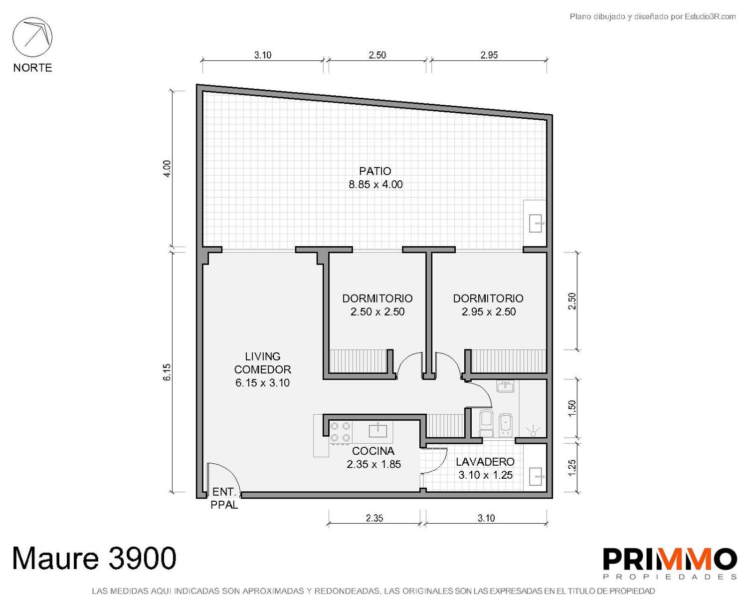 Las medidas, superficies consignadas en la presente descripción son aproximadas, a solo título orientativo y no son vinculantes. Las medidas y superficies reales surgen del Título respectivo.