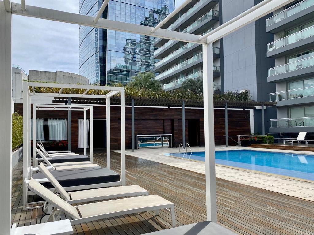 Excelente Mono ambiente de 55 metros cubiertos más balcón al frente , en piso alto.Baño completo. Cocina incorporada, aire acondicionado split frio/calor. Edificio emblemático de Puerto Madero.Full amenities y zonas verdes.