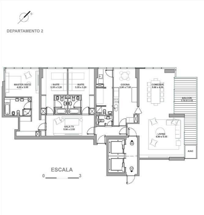 Departamento 3 ambientes con terraza en venta Vicente Lopez Infinity Towers