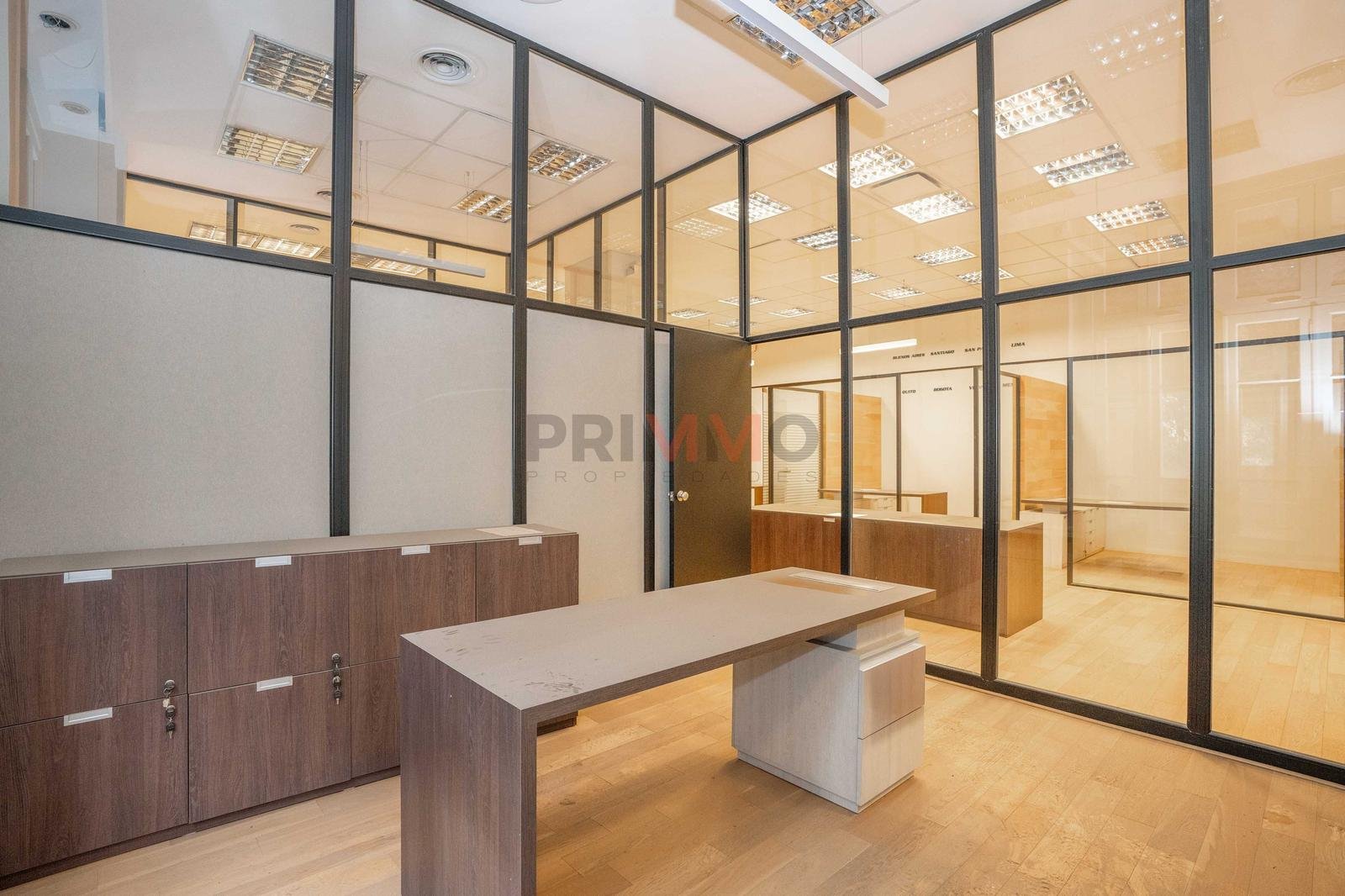 La oficina se encuentra compartimentada y con luminaria.