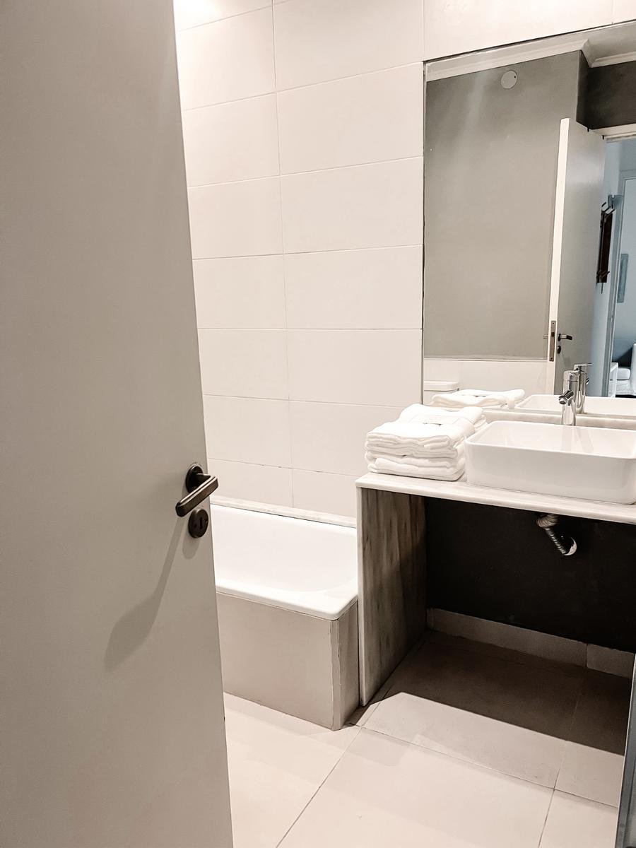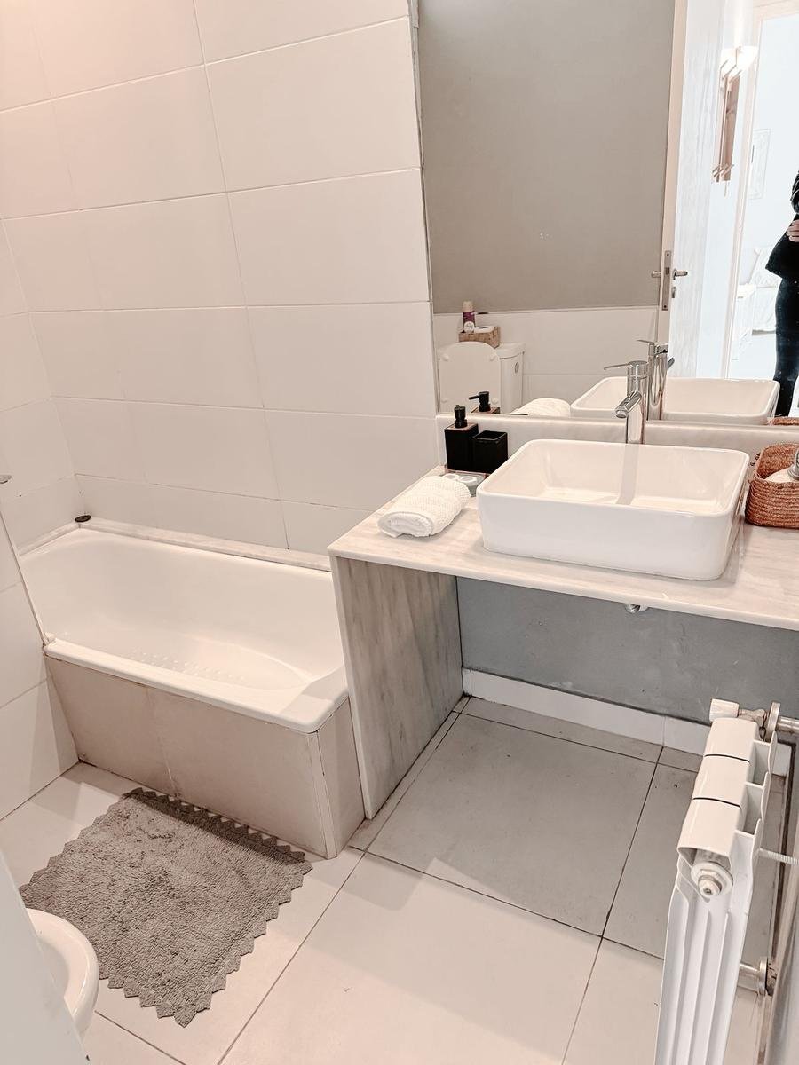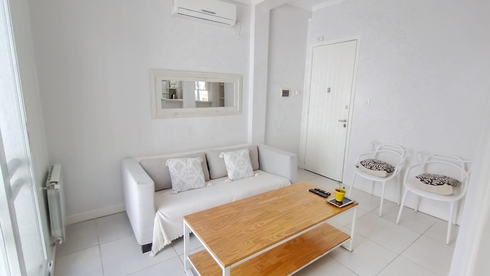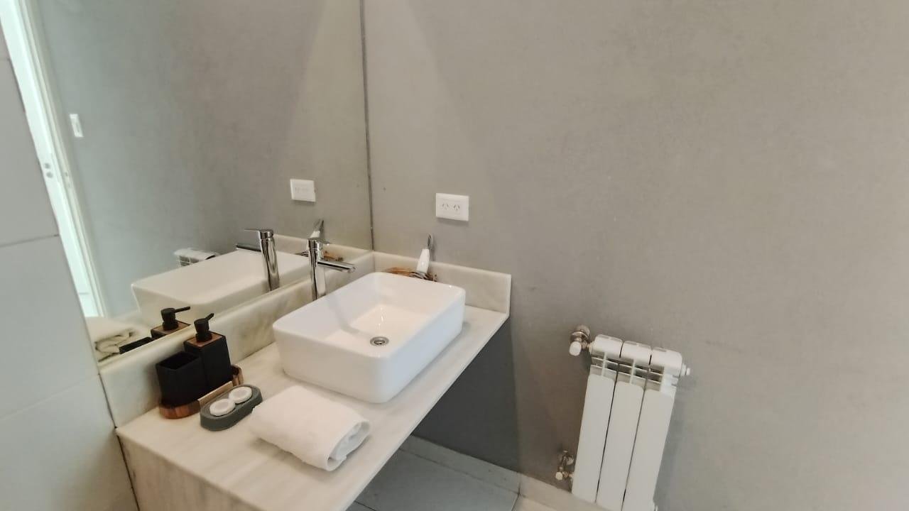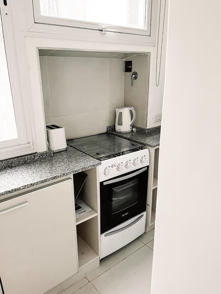 Ingresando al departamento nos encontramos con un living comedor con tv y cocina integrada, amplia y cómoda. Con mucho espacio de guardado con muebles bajo mesada, espacio para vinos, copas y electrodomesticos. Mesada de granito y cocina con horno a gas. Equipada con heladera, lavarropas, lavavajillas, micoondas, pava eléctrica y tostádora. Una mesita para poder sentarse para la cena o desayunar. Sillón, mesa ratona, sillas y vajilla completa.