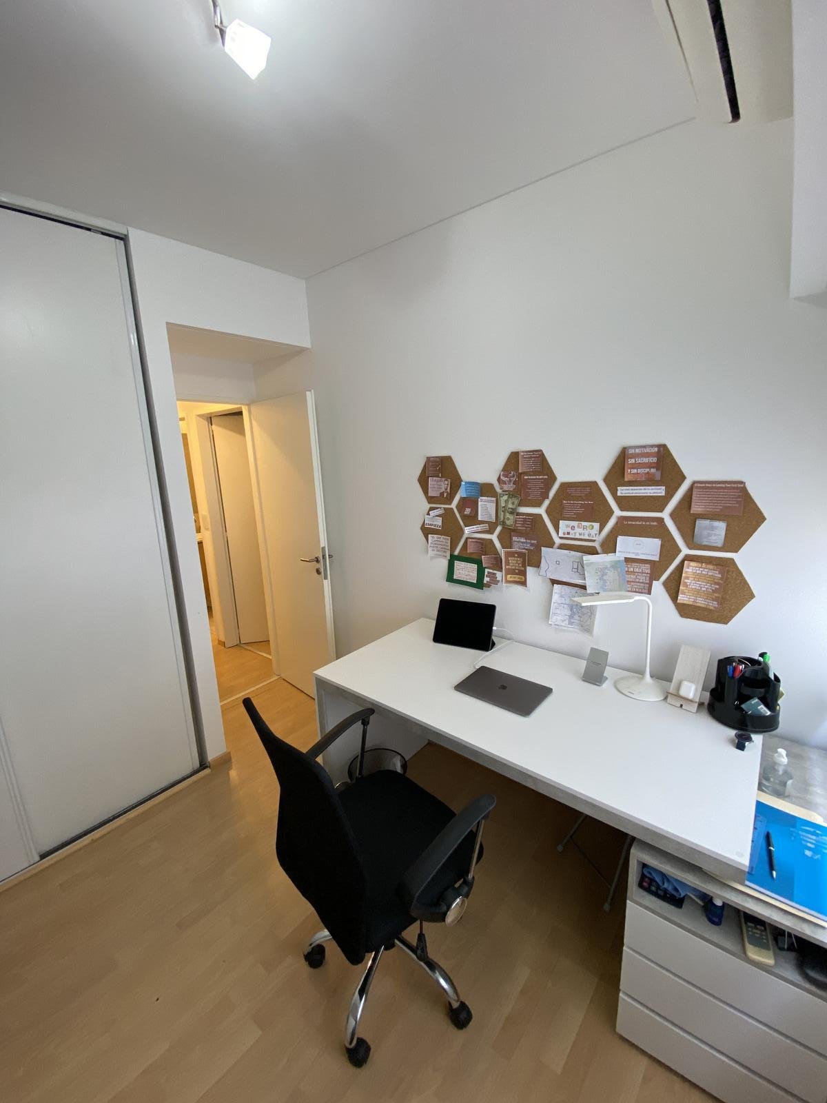 La planta es muy funcional, con una cocina office bien equipada, luminosa y con salida al balcón, al igual que el living comedor, el cual tiene espacio comedor y un área de relax.