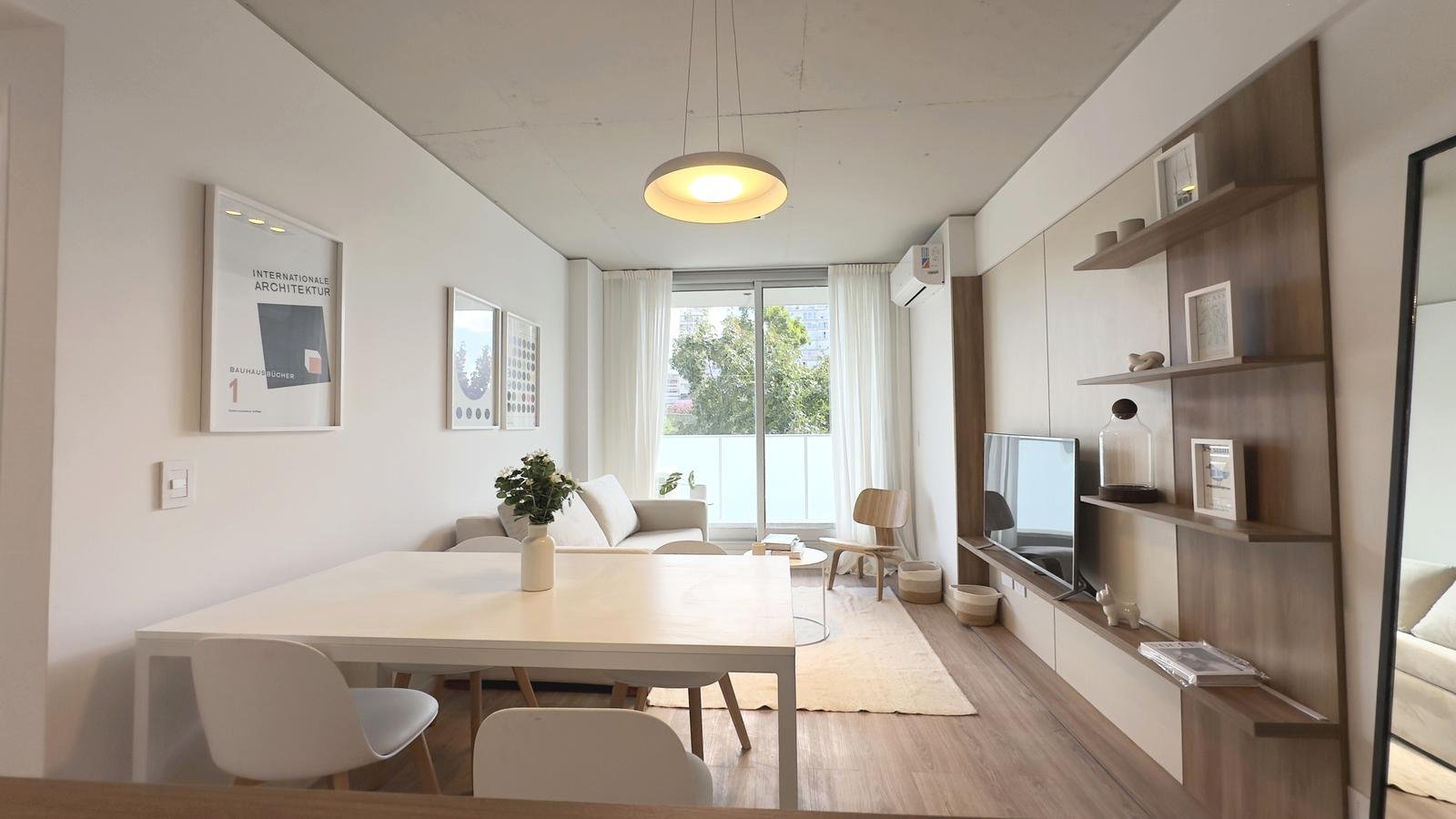 · Pisos vinílicos · Carpinterías de aluminio · Anafes eléctricos de primera marca · Muebles de cocina revestidos en melamina · Aire acondicionado frío/calor de bajo consumo instalado · Mesadas de granito en cocina y mármol en baño · Griferías y artefactos sanitarios de primera marca · Doble vidriado hermético en todas las carpinterías · Agua caliente central · Iluminación LED en espacios comunes · Hall de acceso de moderno diseño