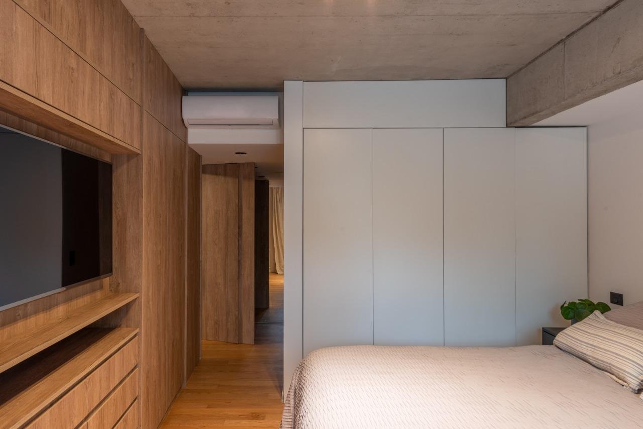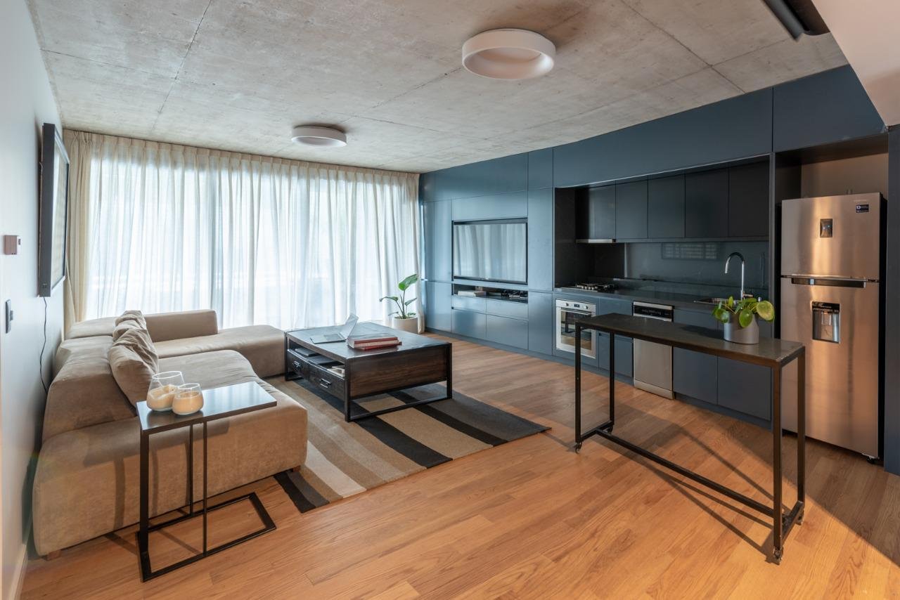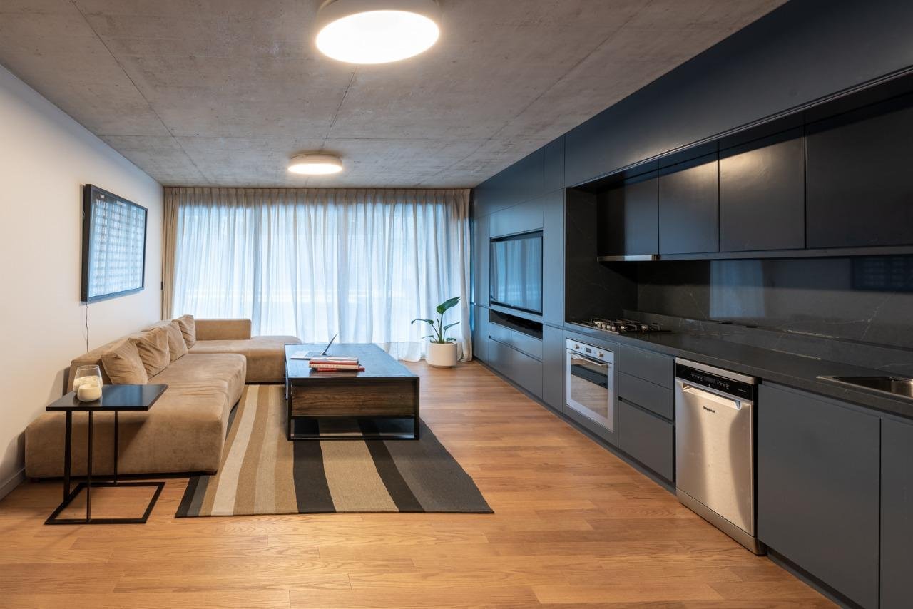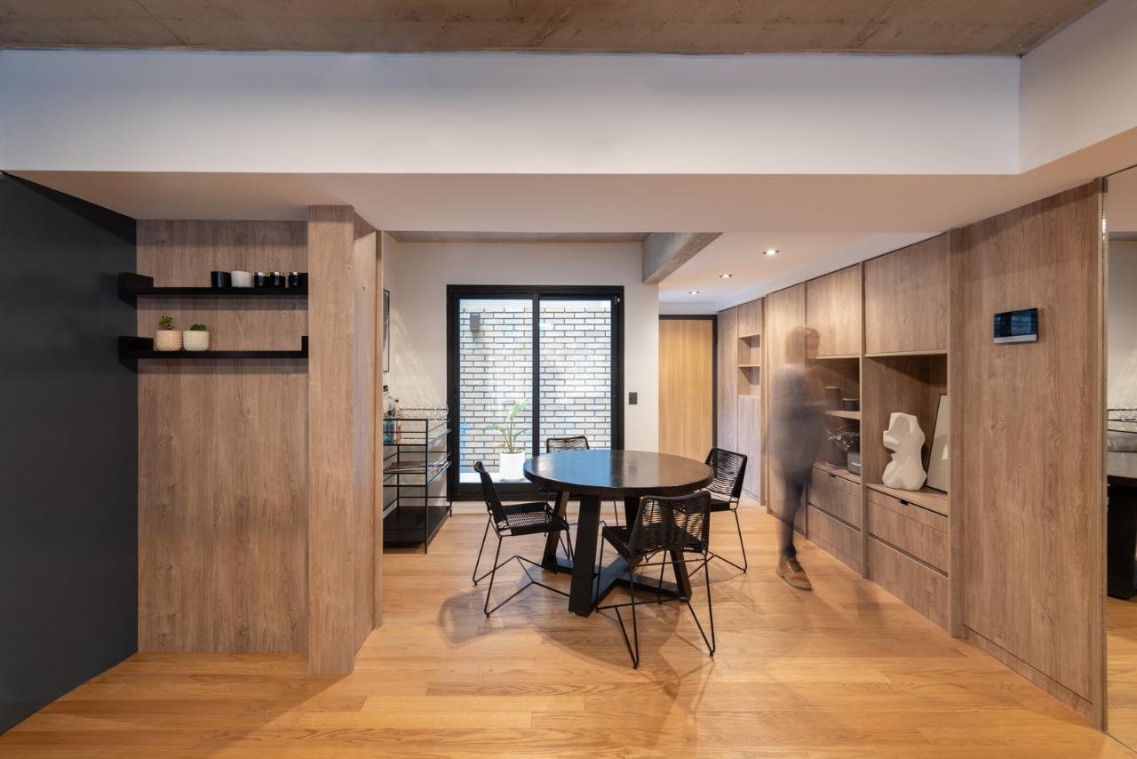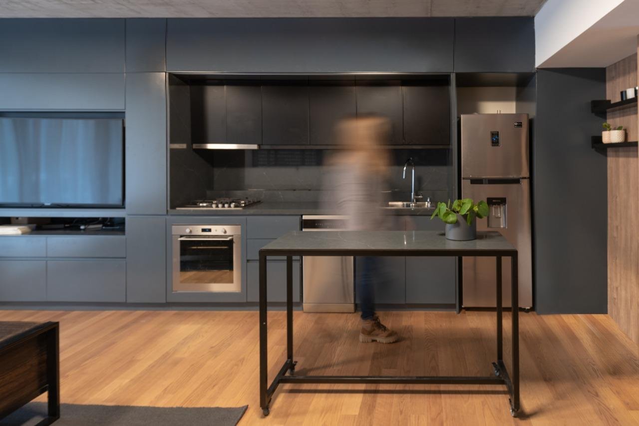 – Cocina con muebles bajo mesada y alacena integrada al living