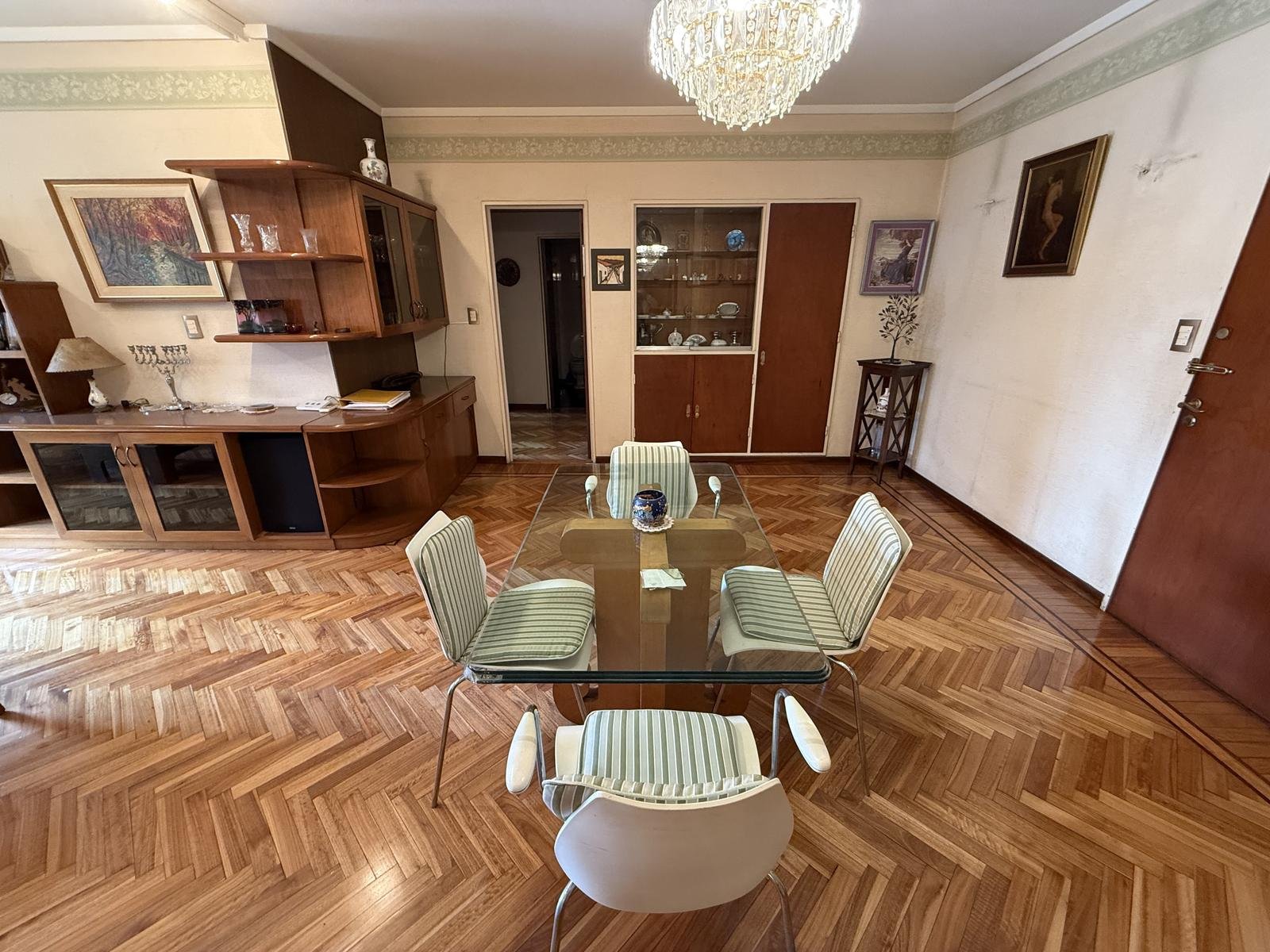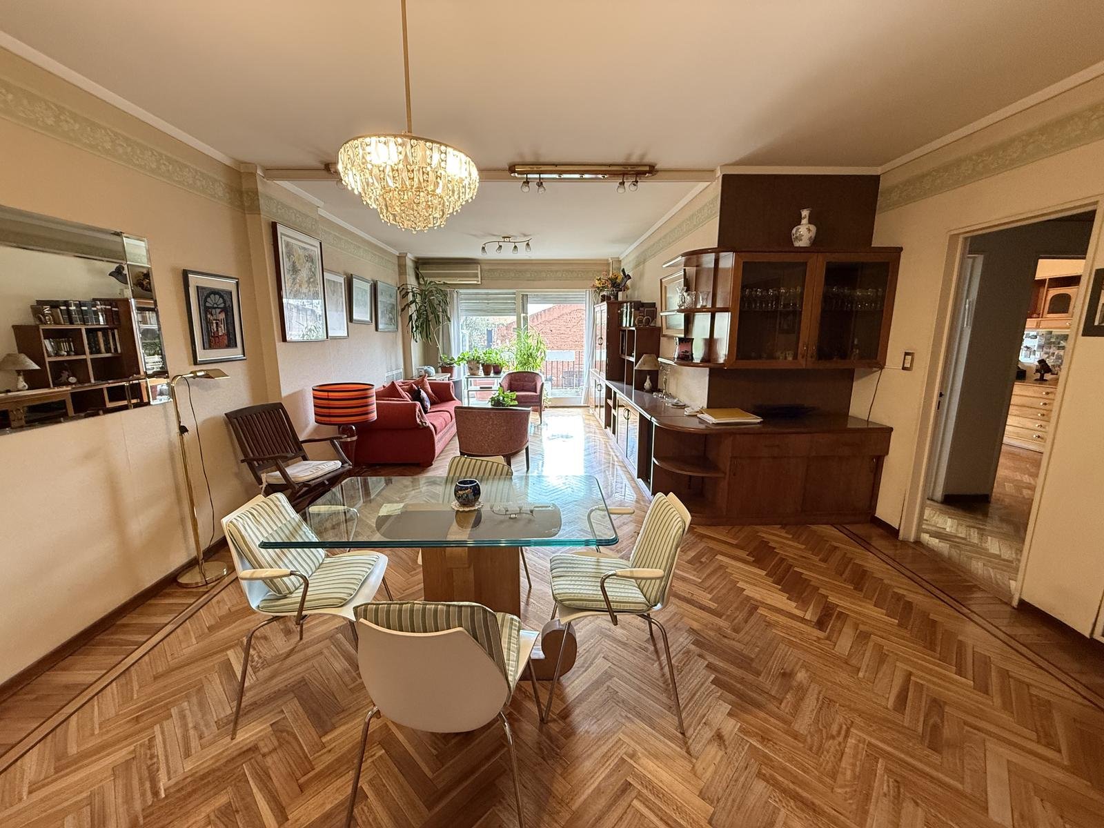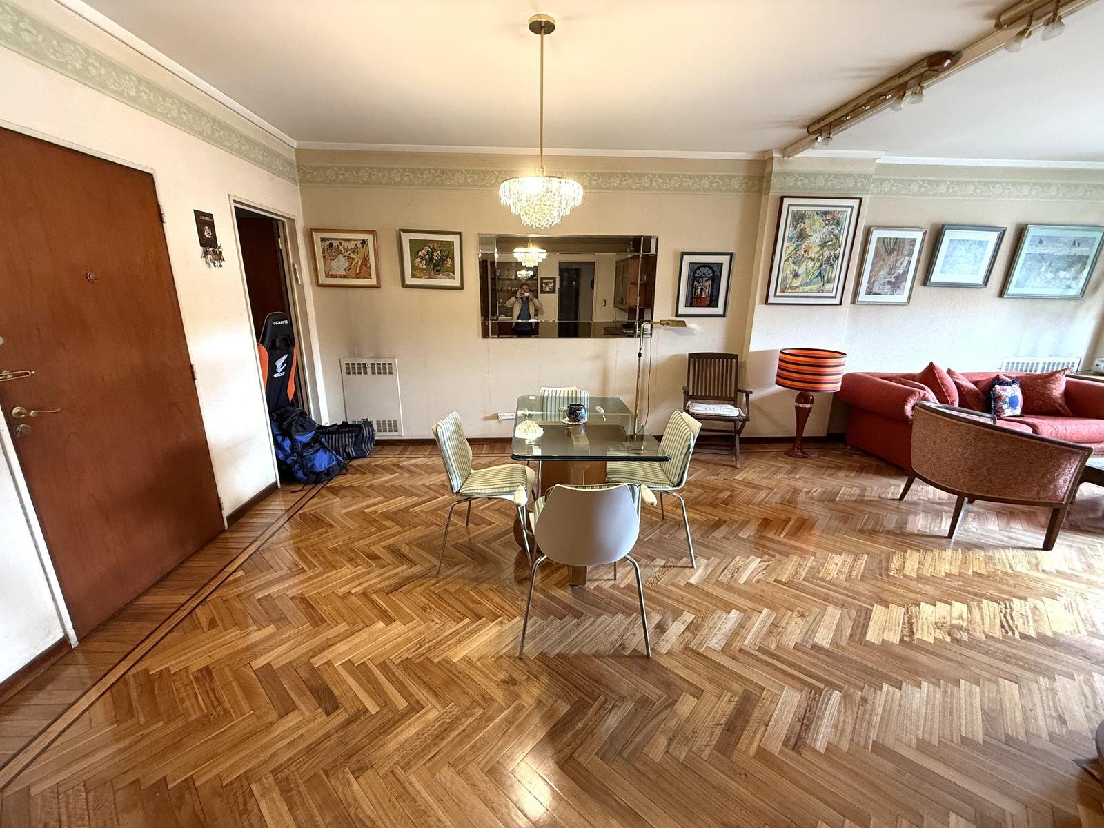 Con palier privado y entrada de servicio, cuenta con 3 dormitorios, amplio living comedor con pisos de madera, salida a balcón corrido con orientación Norte, lo que aporta mucha luz,
