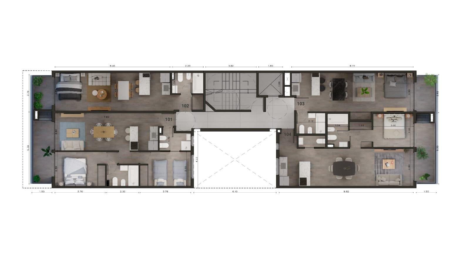 Pensamos el edificio con amplias unidades Mono Ambientes, Dos Ambientes con