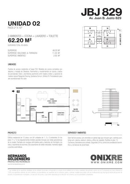 Cocina semi integrada amplio living comedor con salida al balcón corrido. Dormitorio en suite. Toilette de recepción. Lavadero.
