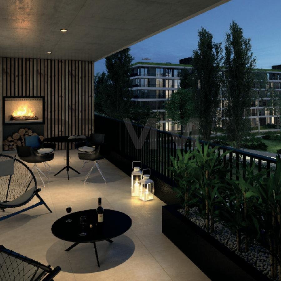 Ambos ambientes dan al balcon terraza corrido con parrilla a carbon. Vista a los amenities y espacios verdes del complejo.