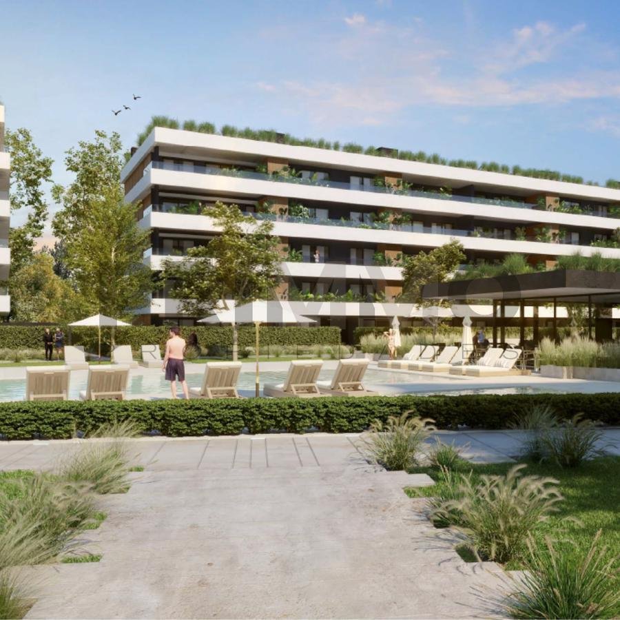 Ambos ambientes dan al balcon terraza corrido con parrilla a carbon. Vista a los amenities y espacios verdes del complejo.