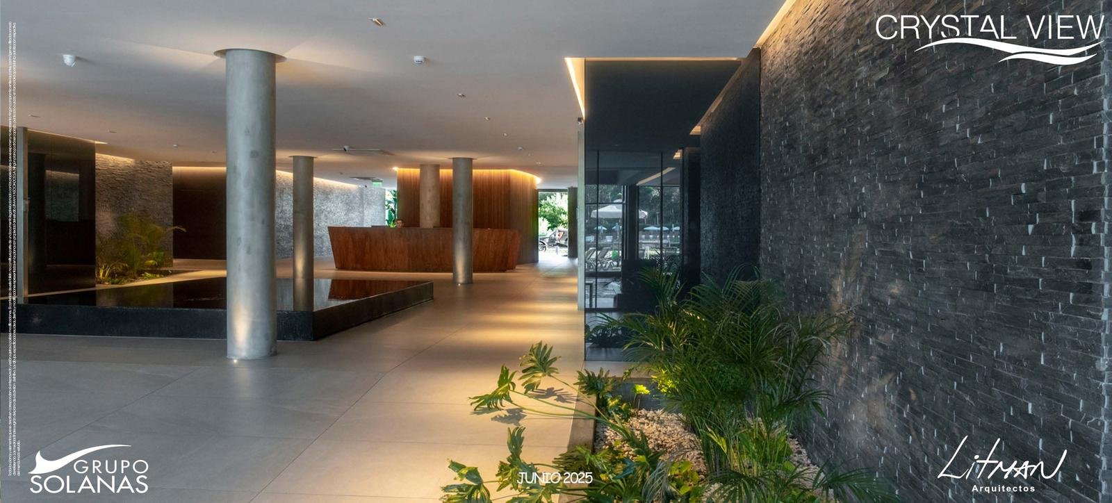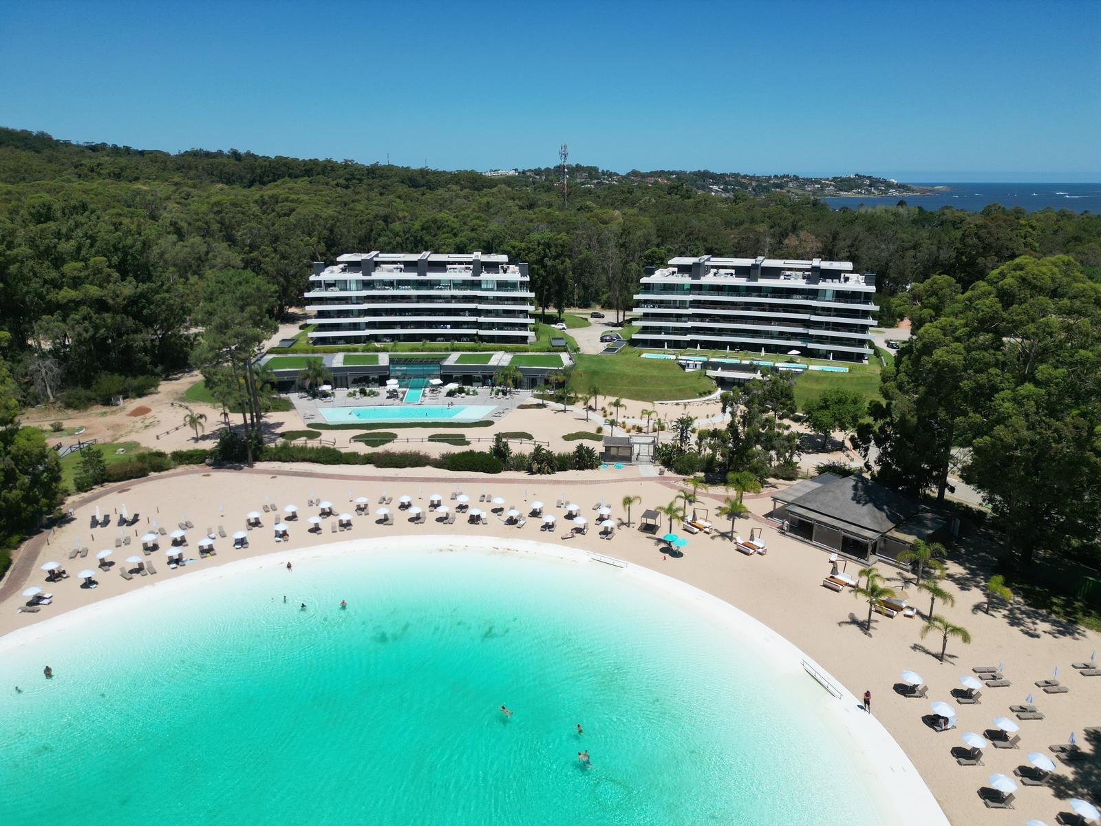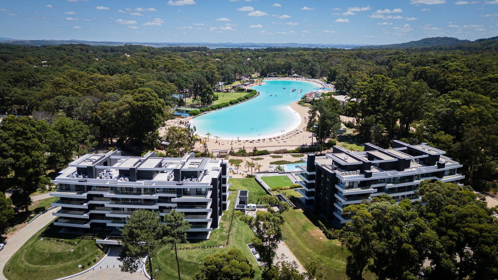 El Desarrollo consiste en 6 Edificios bajos, “Edificios Casa” distribuidos en dos sets de 3 edificios cada uno: uno en el AREA SUR donde se encuentran terminados 2 de los 3 edificios y el otro en el AREA OESTE de la Laguna (construcción aun no lanzada), unidos cada tres bloques con un Lobby y un ClubHouse y Spa privado por cada 3 edificios