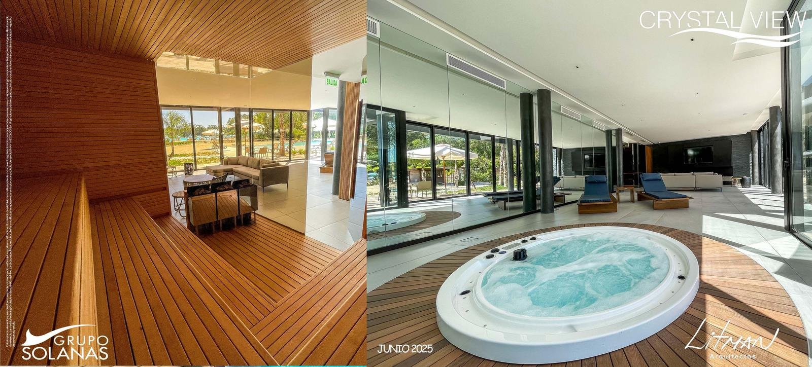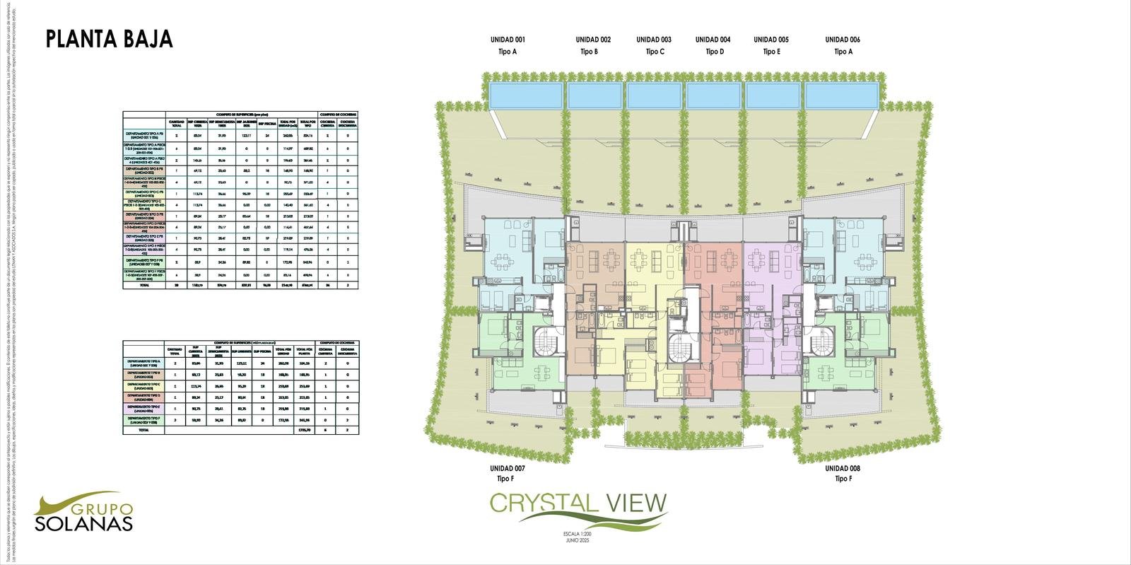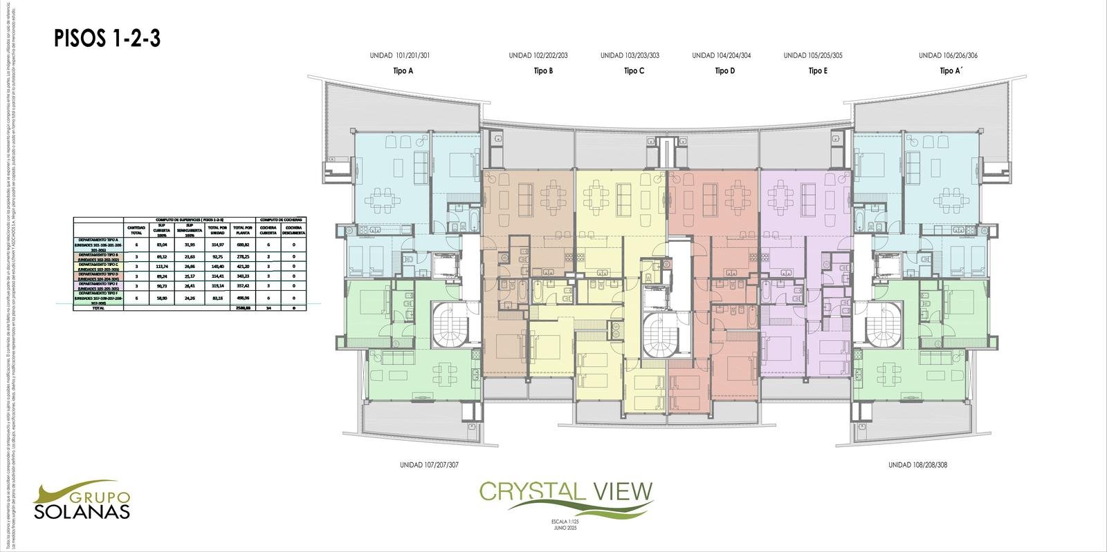 El Desarrollo consiste en 6 Edificios bajos, “Edificios Casa” distribuidos en dos sets de 3 edificios cada uno: uno en el AREA SUR donde se encuentran terminados 2 de los 3 edificios y el otro en el AREA OESTE de la Laguna (construcción aun no lanzada), unidos cada tres bloques con un Lobby y un ClubHouse y Spa privado por cada 3 edificios