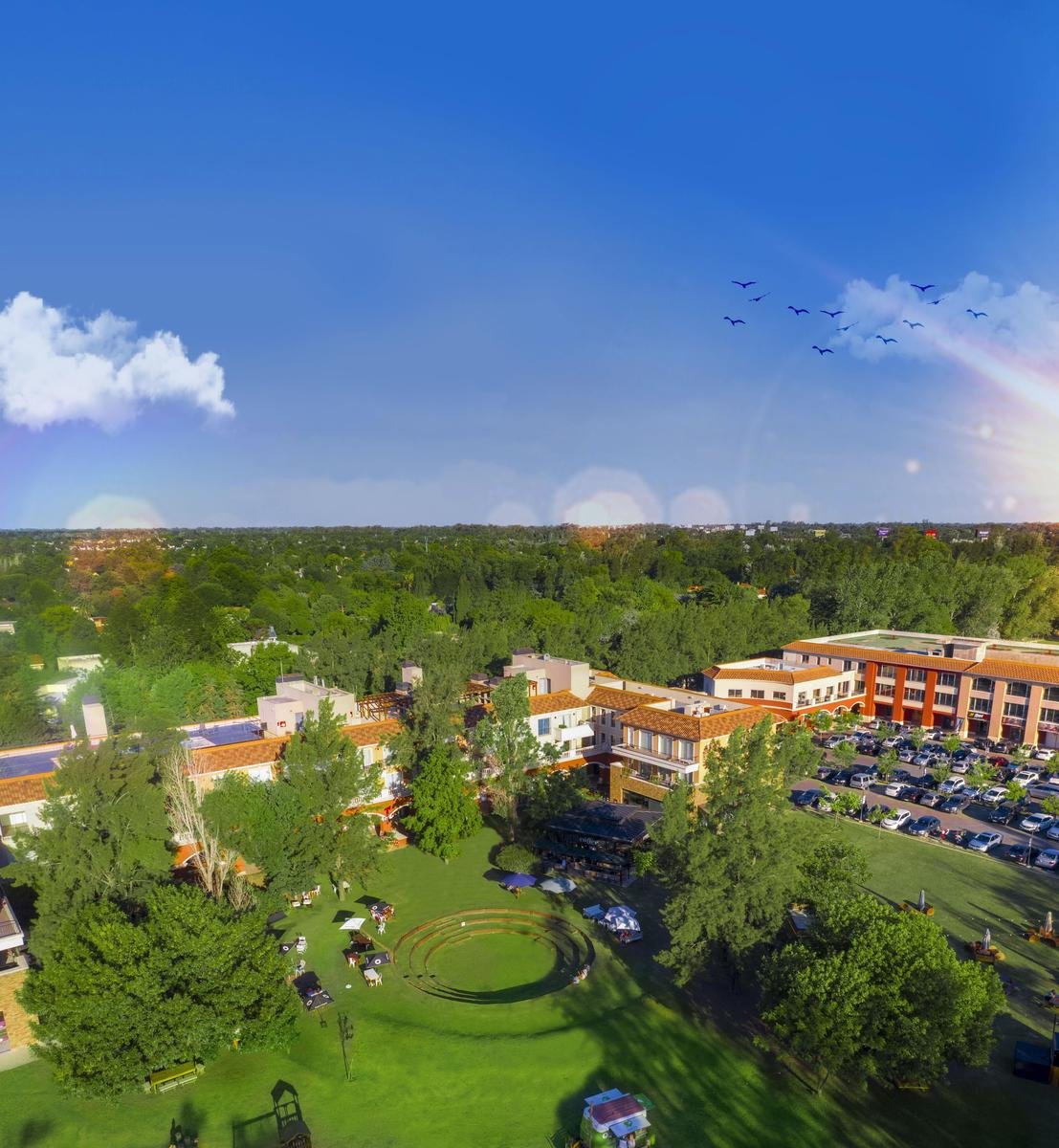 El Anfiteatro: El corazón cultural y social del proyecto. Un espacio a cielo abierto diseñado para eventos, espectáculos y encuentros, que aporta una identidad única y valor agregado a la propiedad.