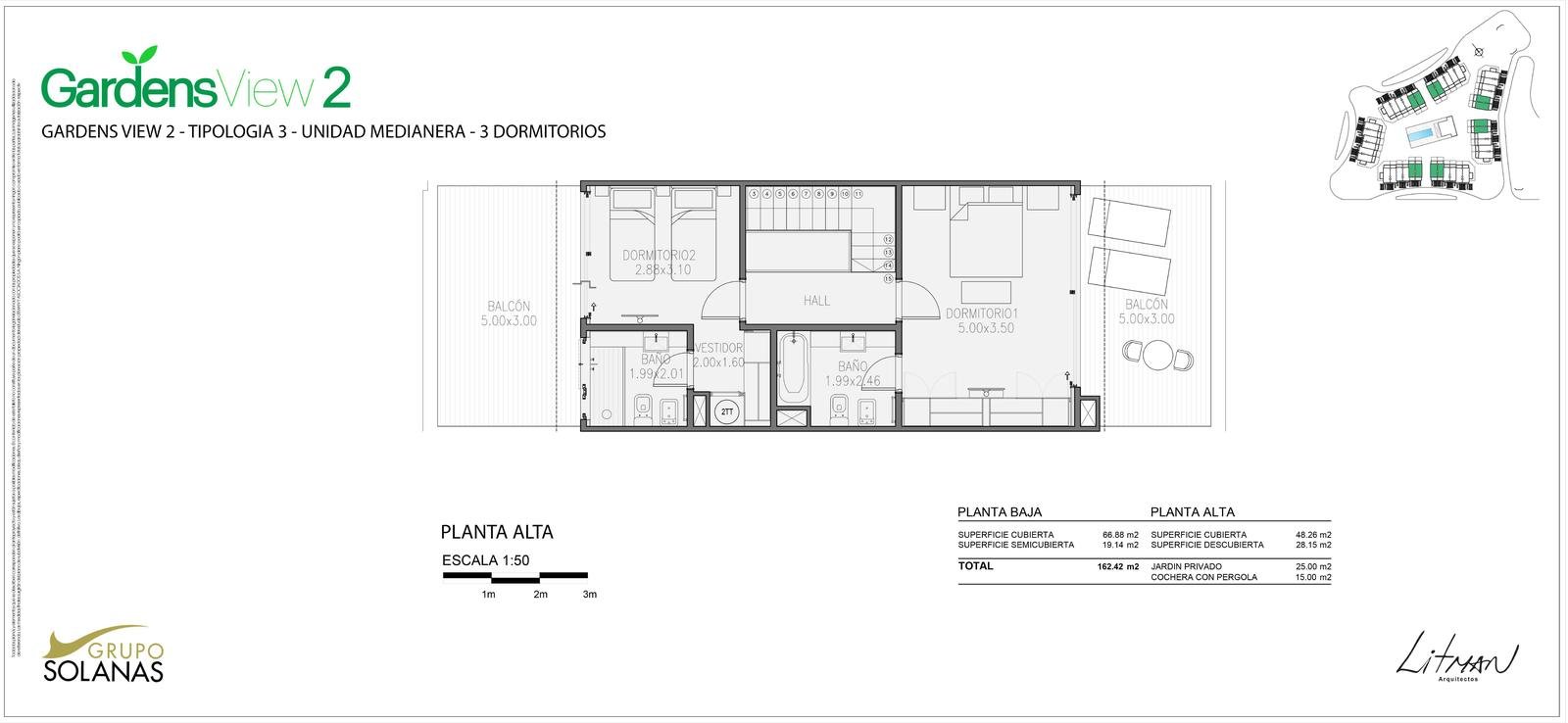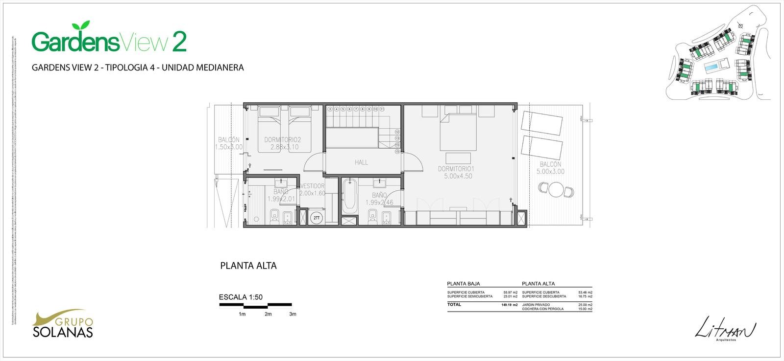 Townhouses de 2 y 3 dormitorios, desde 98,79 m2 hasta 127,53 m2. Precios desde USD 547.432 a USD 740.653
