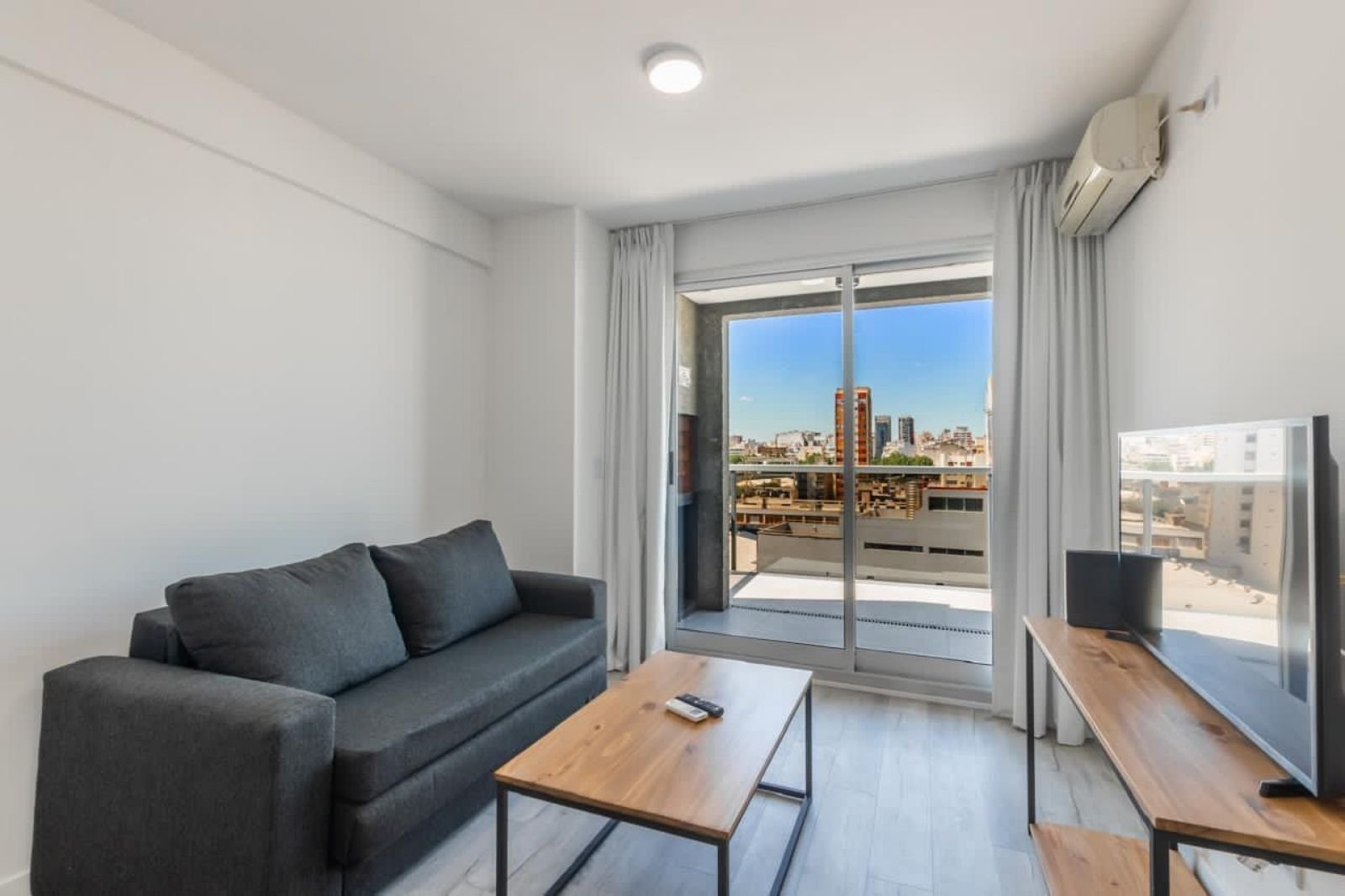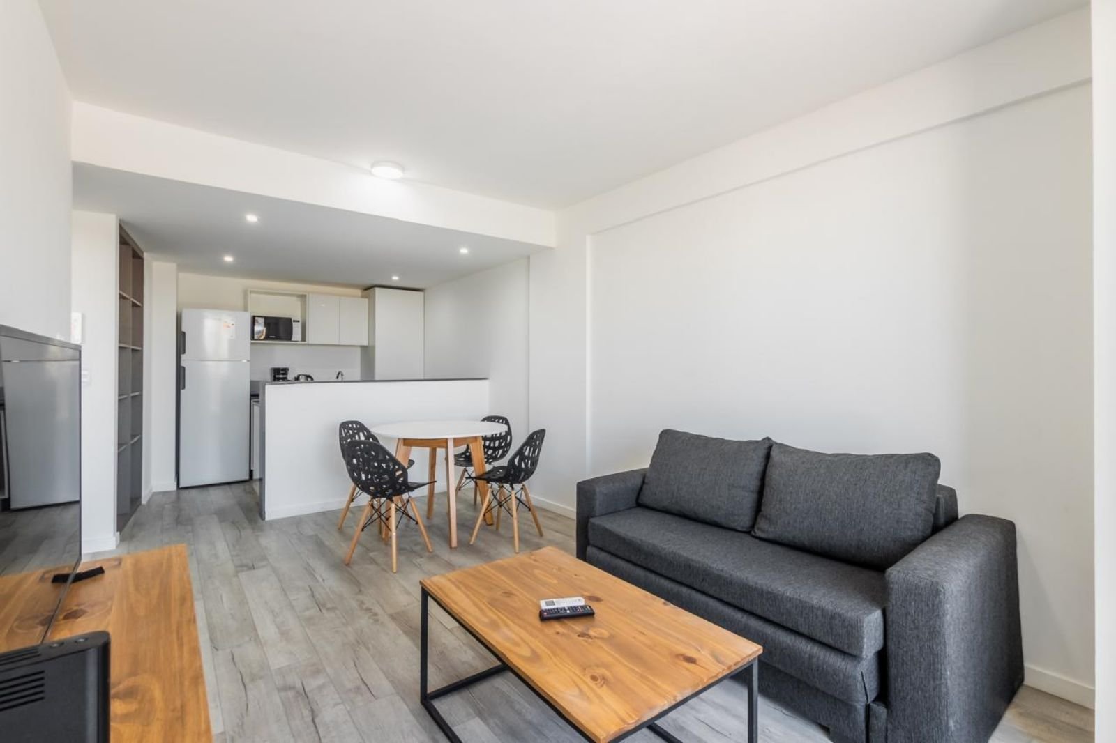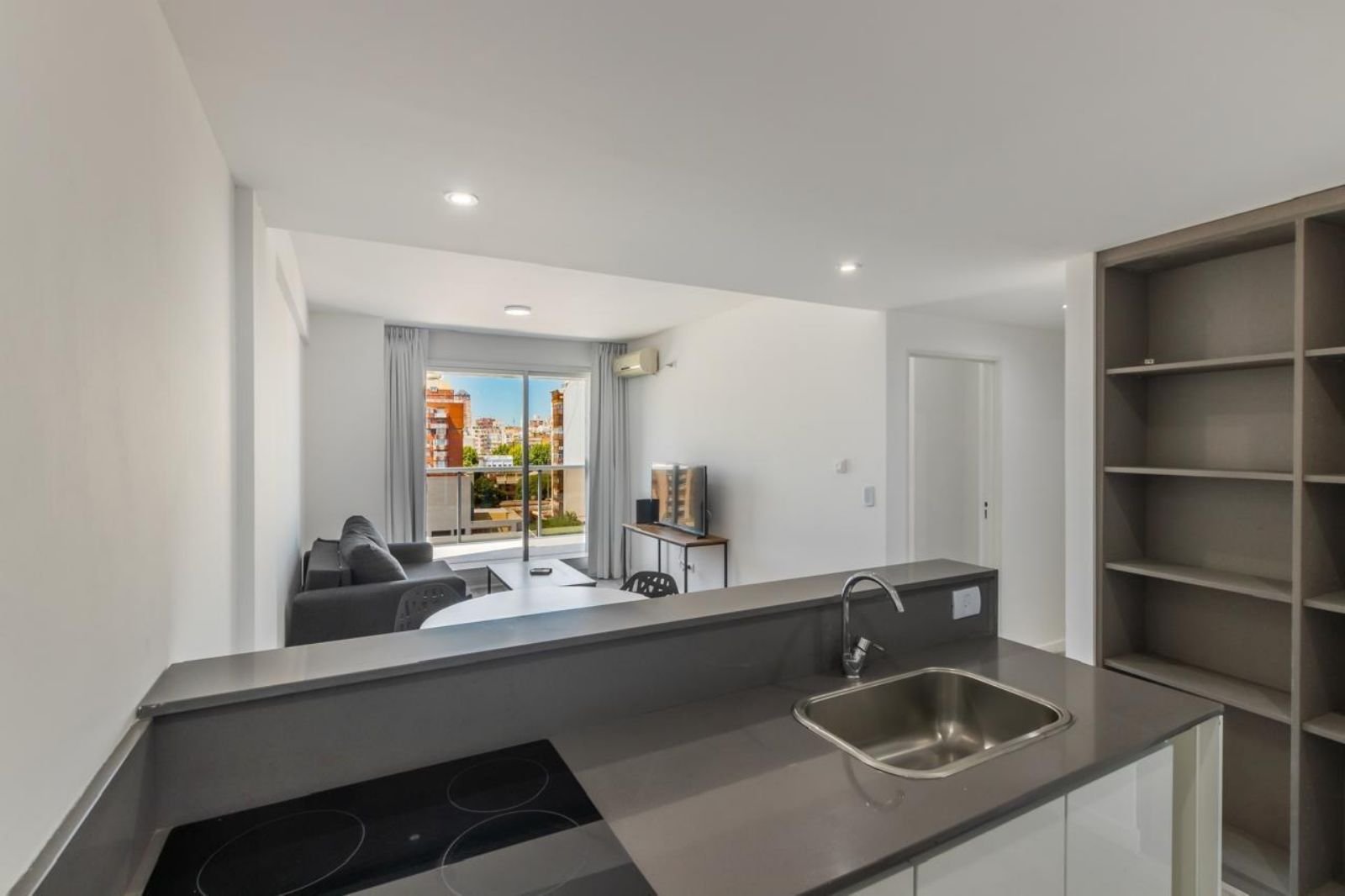 El departamento cuenta con un luminoso living comedor, cocina integrada con barra, un dormitorio con baño en suite y un toilette. Balcón aterrazado con parrilla.