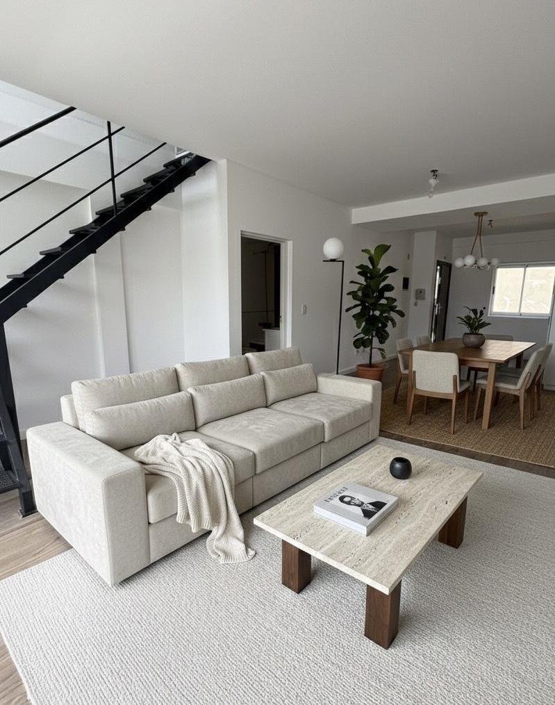 En la planta baja: cocina integrada al living, baño completo, amplio ventanal con vista abierta y salida a balcon aterrazado.