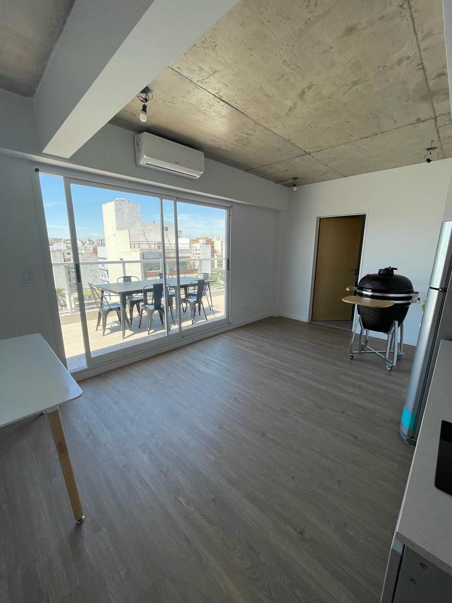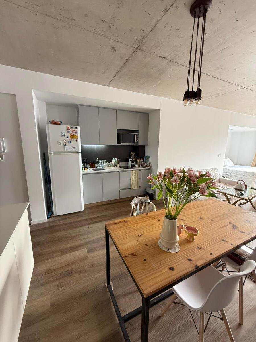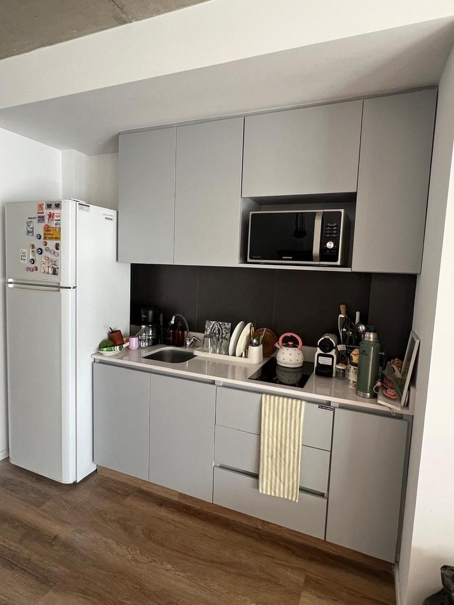El departamento es contrafrente en un piso muy alto. Cuenta con cocina integrada eléctrica con anafe vitrocerámico.