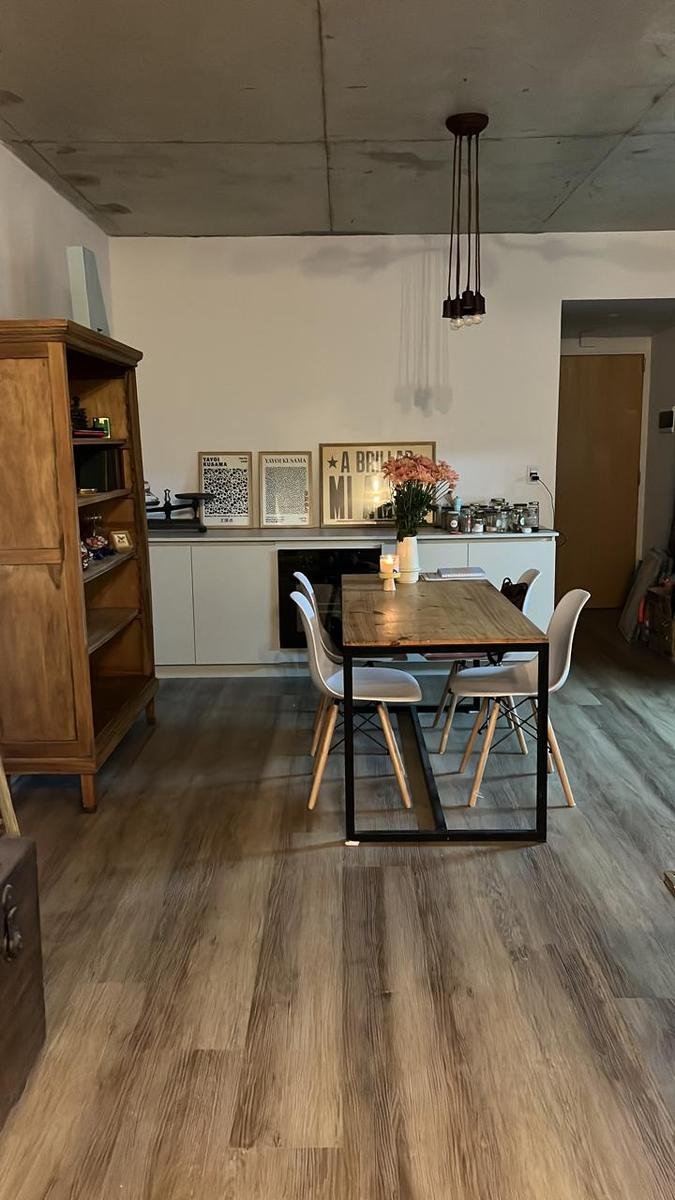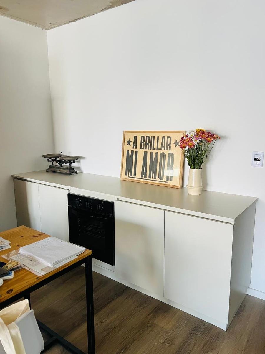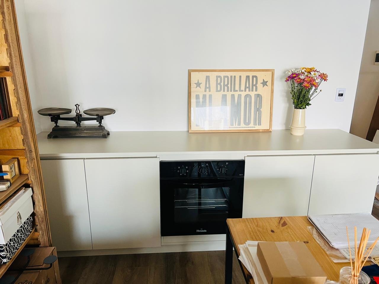 El departamento es contrafrente en un piso muy alto. Cuenta con cocina integrada eléctrica con anafe vitrocerámico.