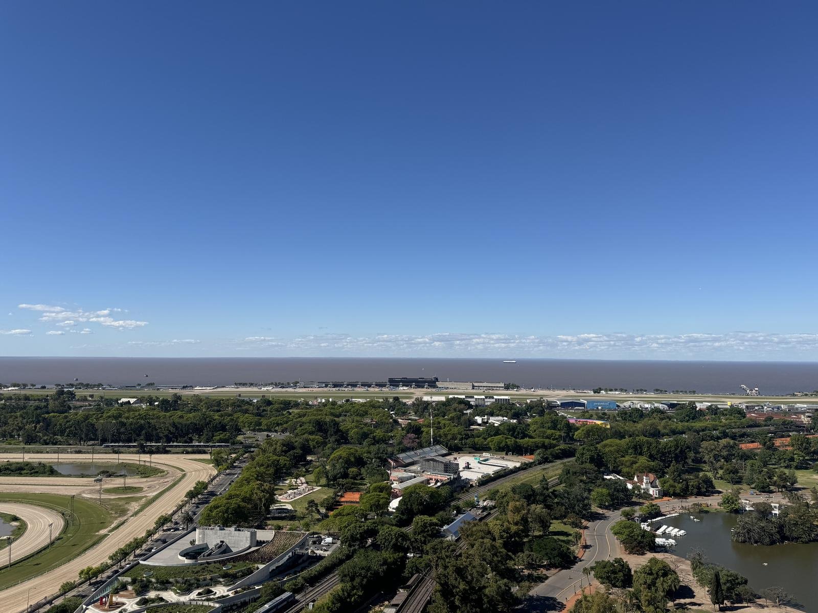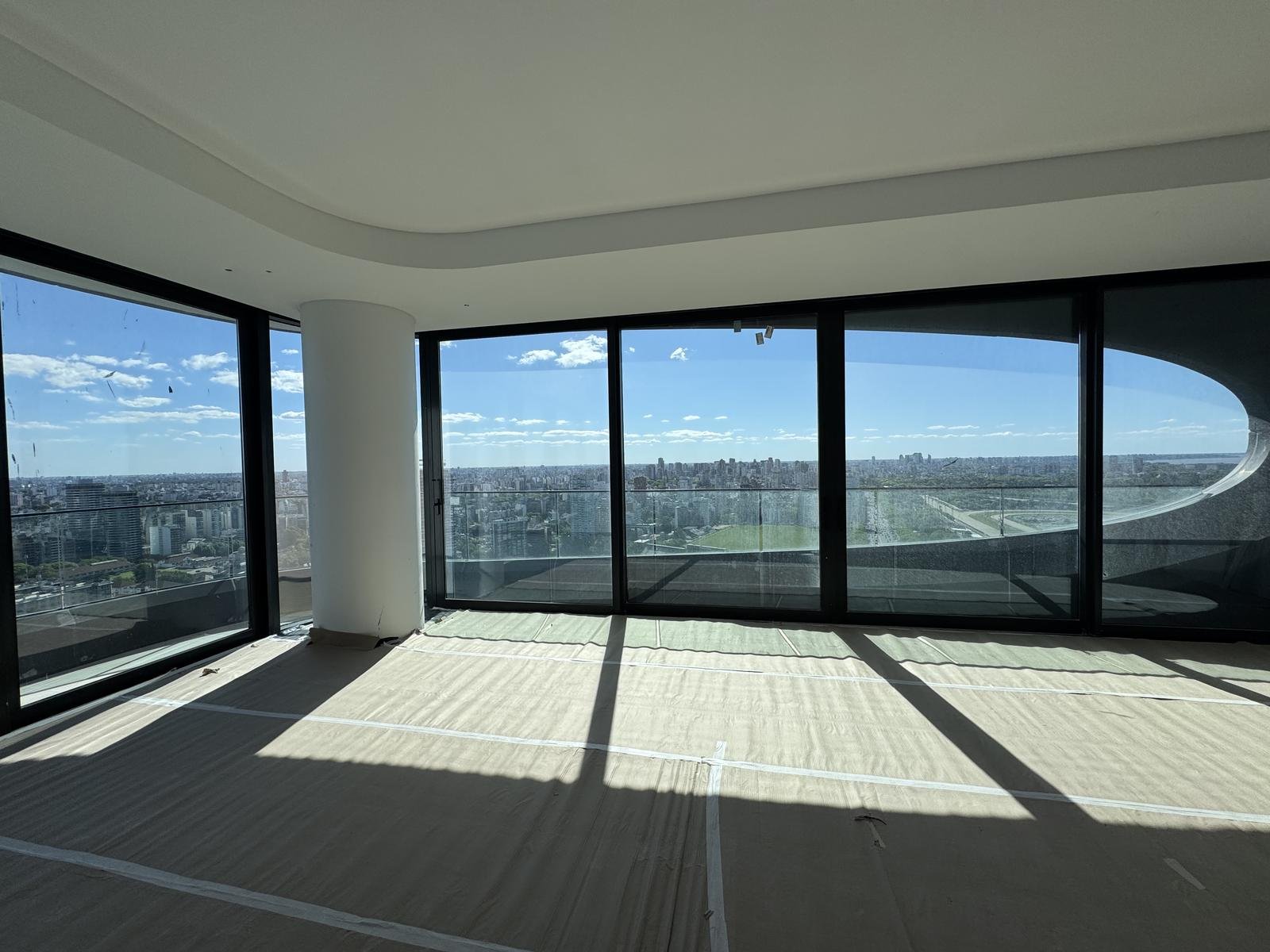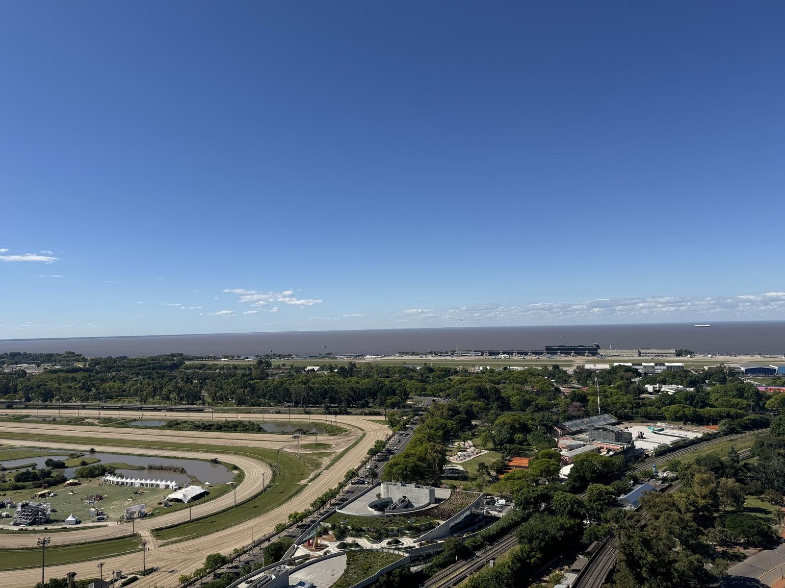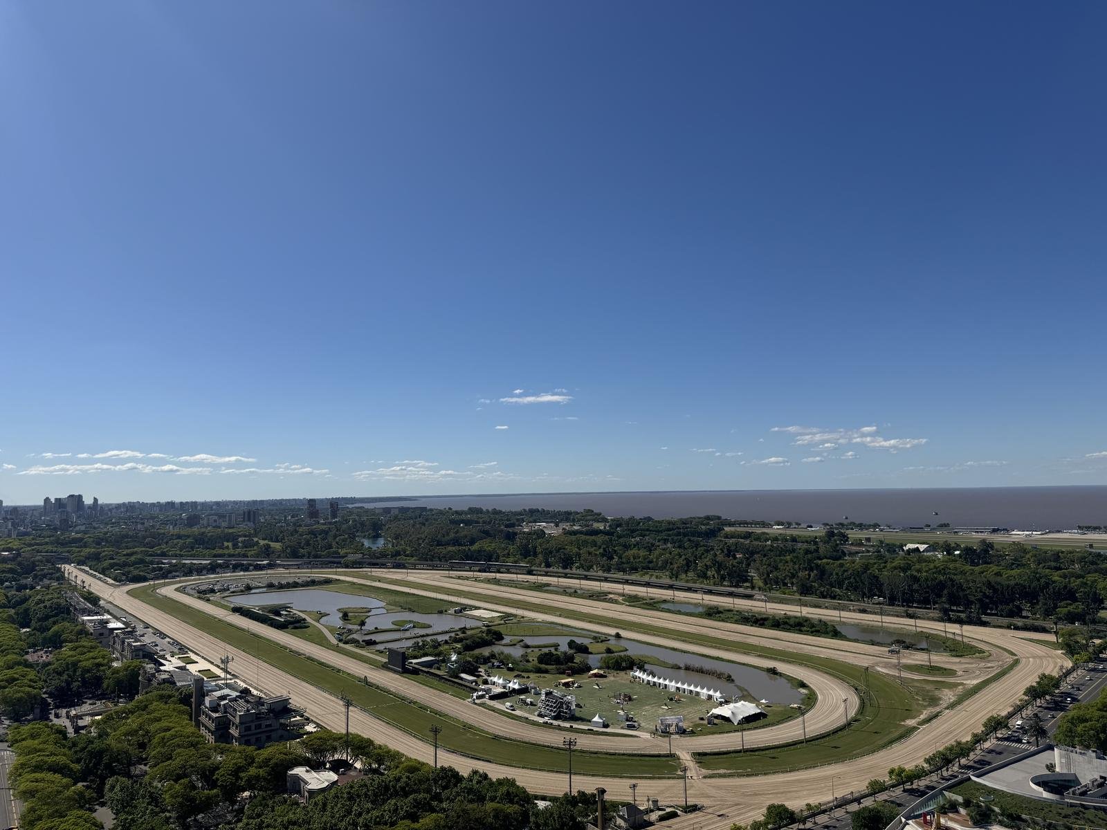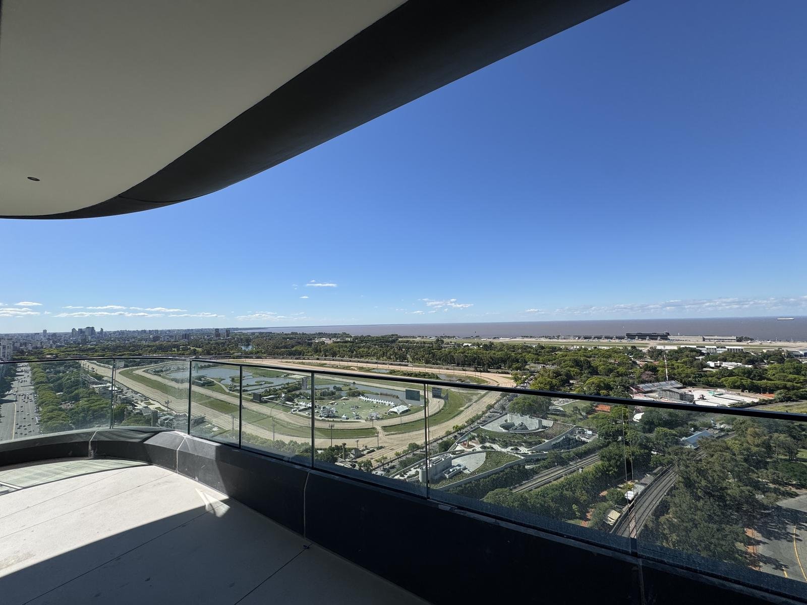 La residencia cuenta con 408 m² totales, distribuidos en amplios ambientes con vistas panorámicas ininterrumpidas al Río, el Hipódromo y la ciudad.