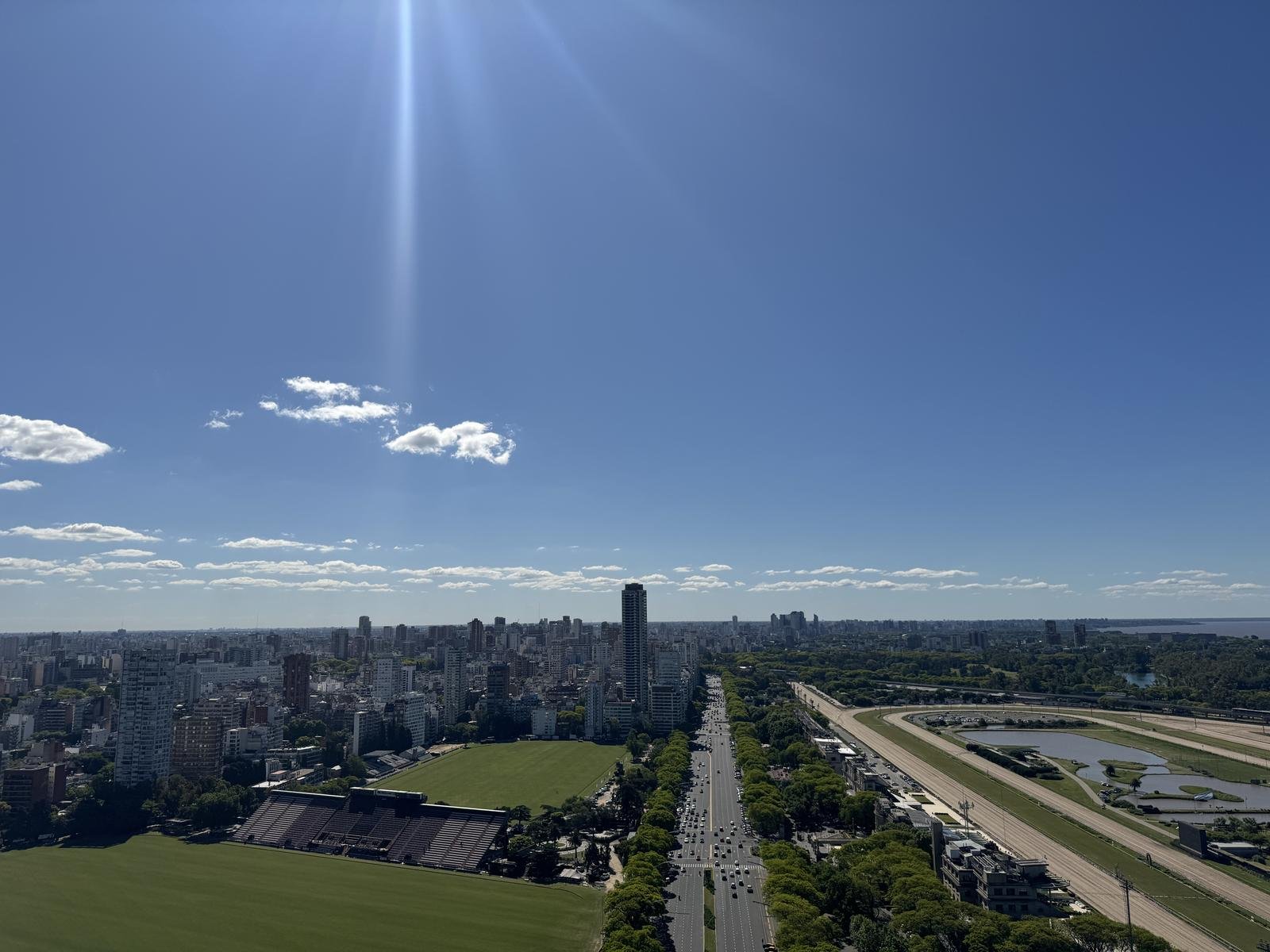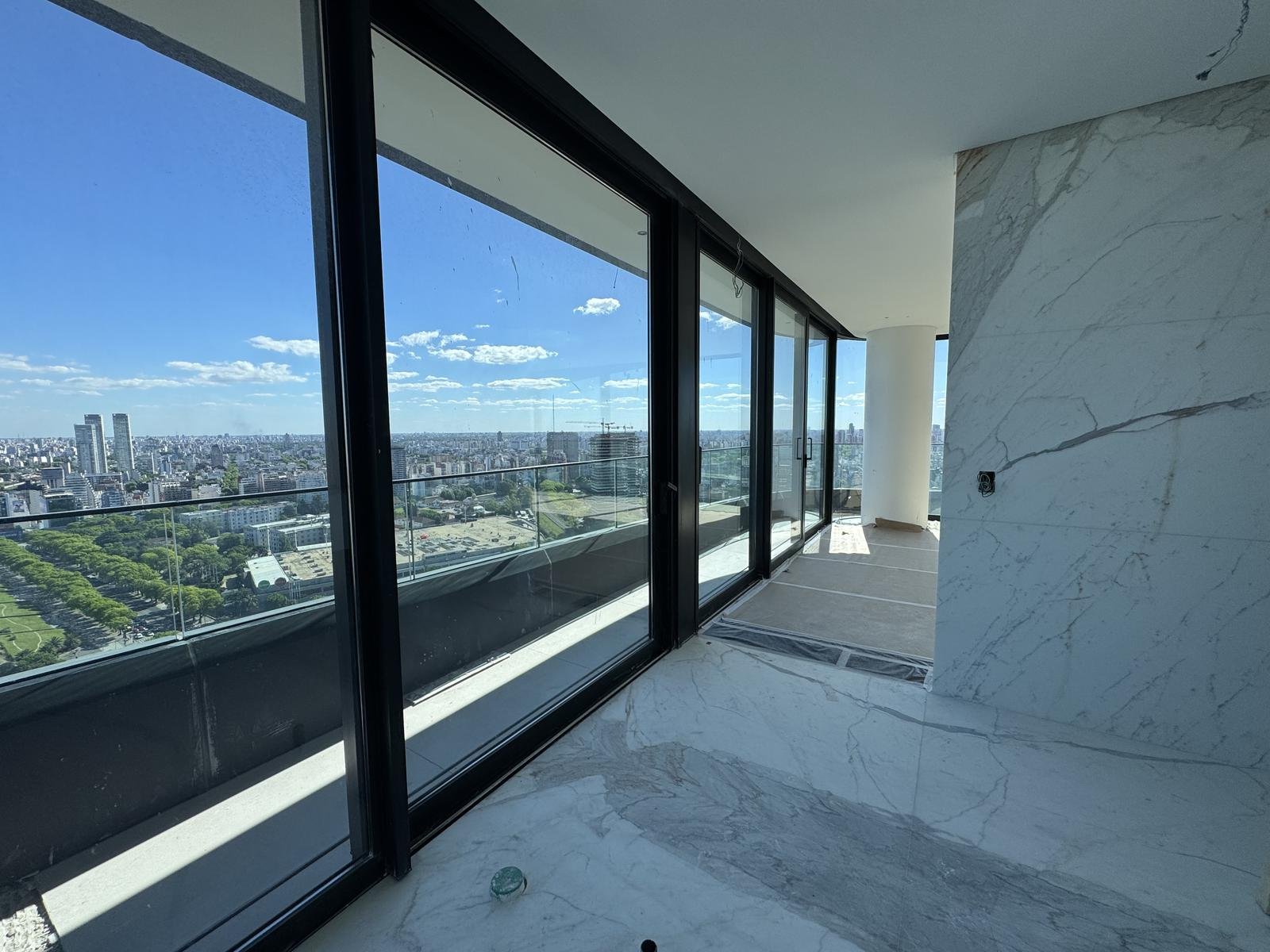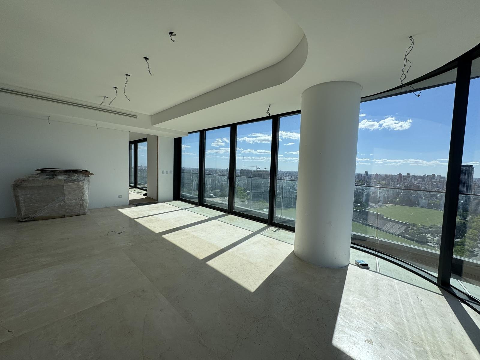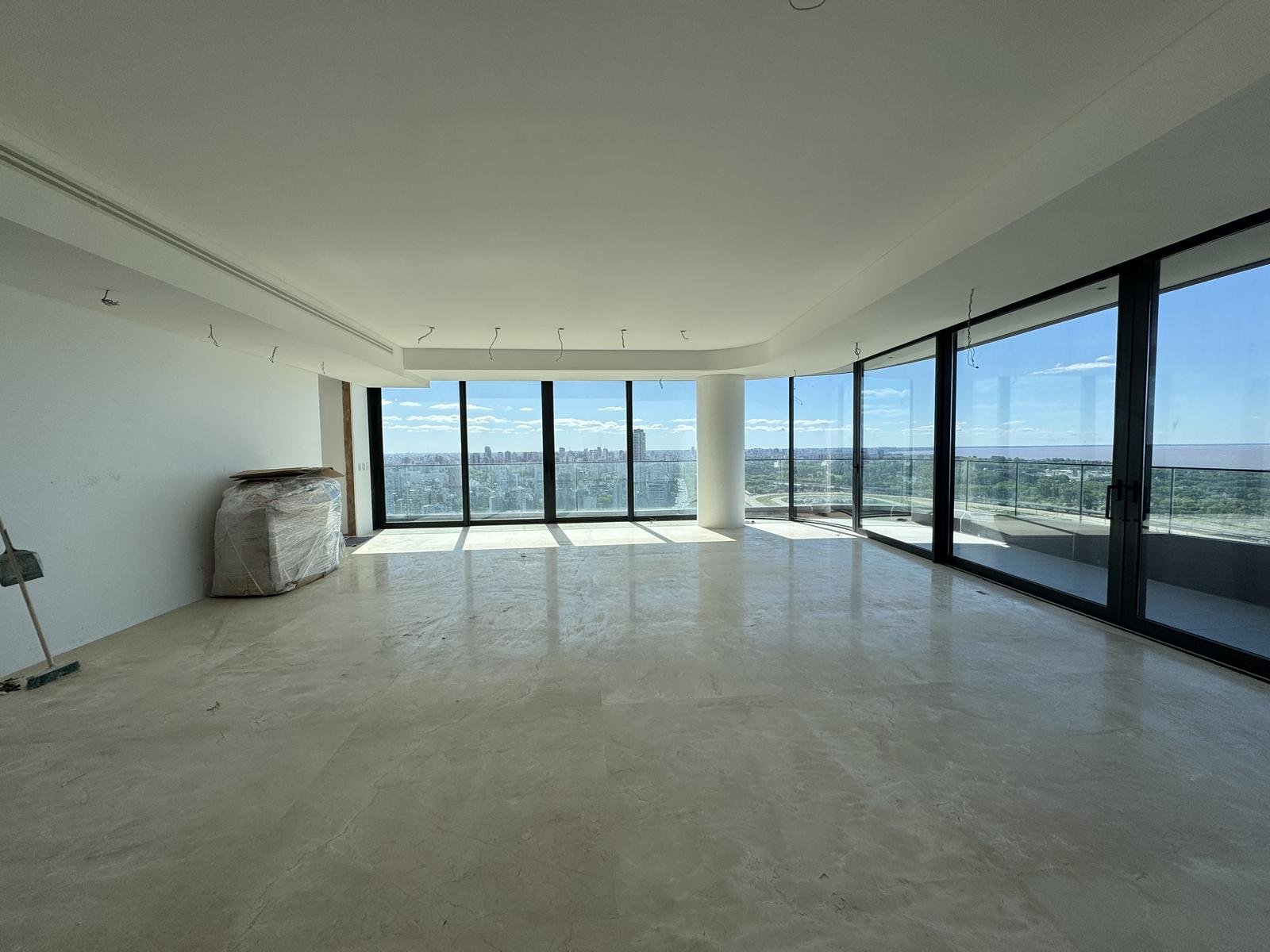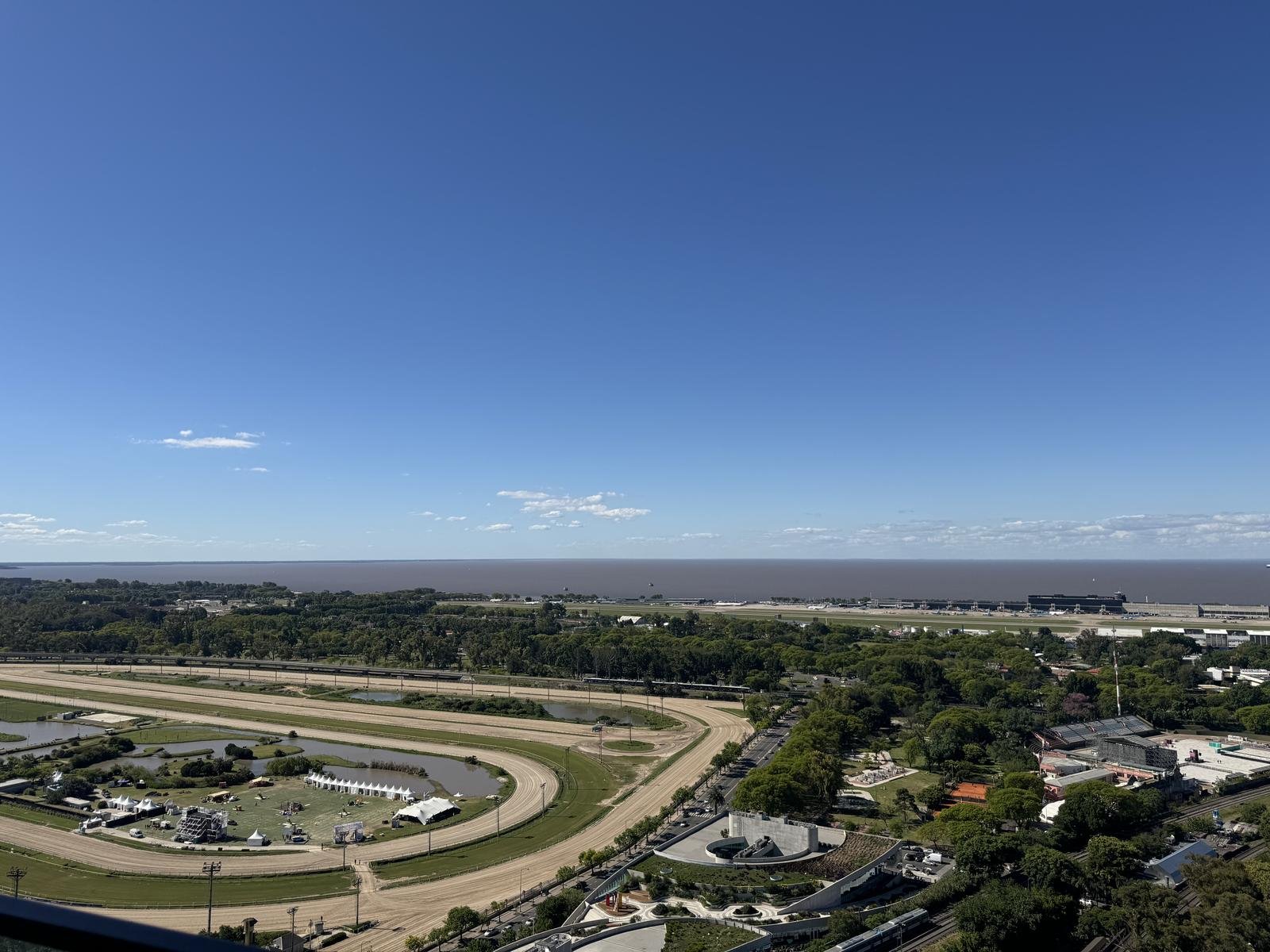 La residencia cuenta con 408 m² totales, distribuidos en amplios ambientes con vistas panorámicas ininterrumpidas al Río, el Hipódromo y la ciudad.