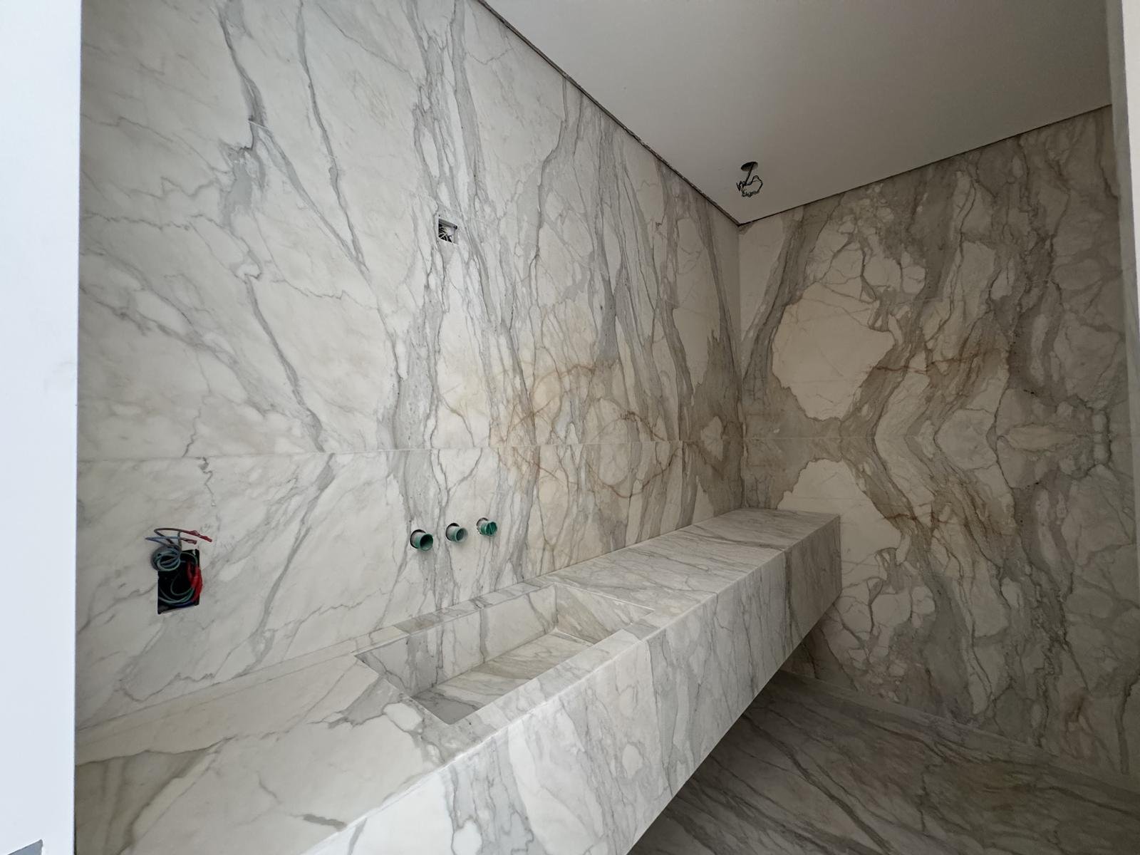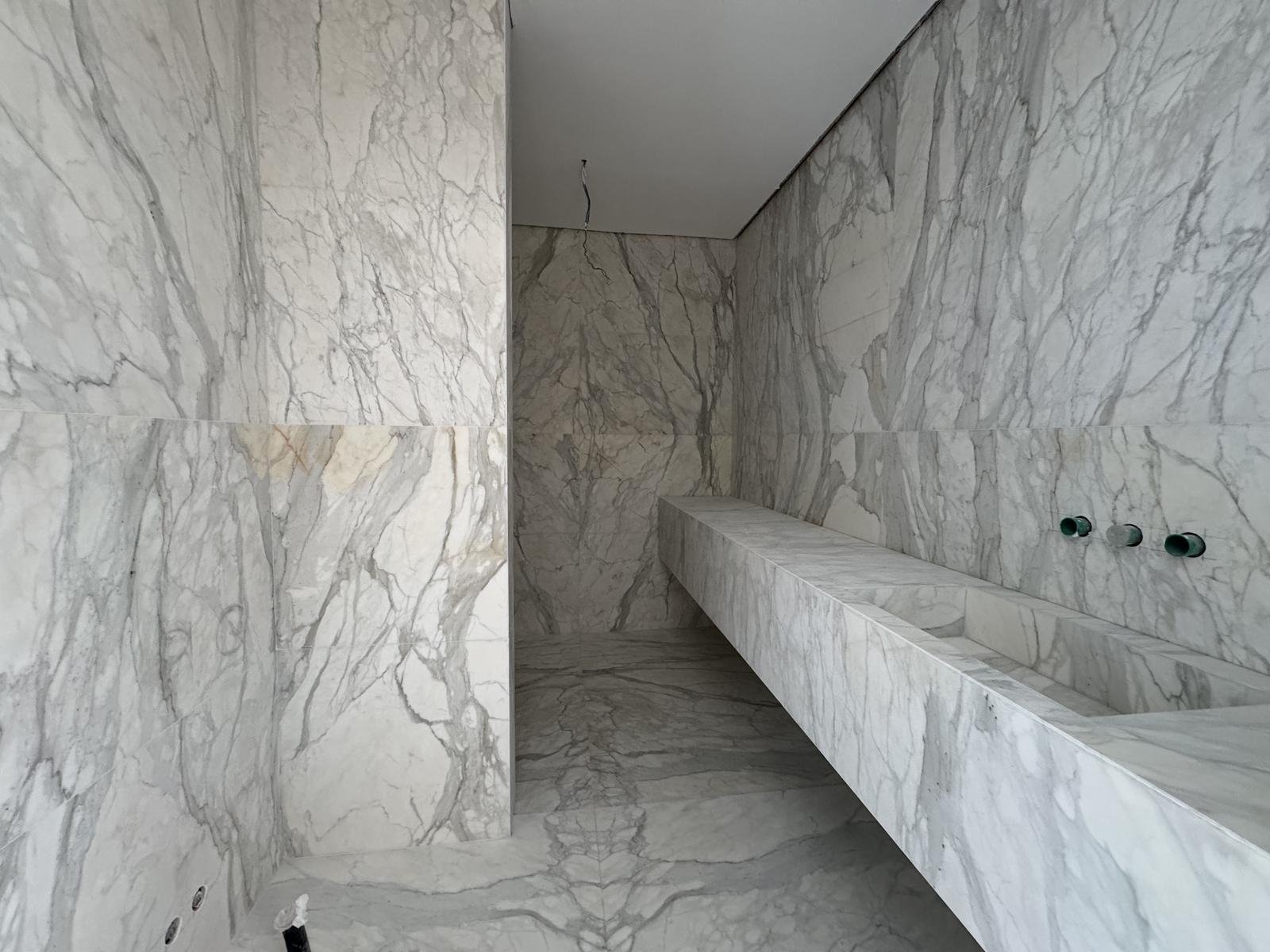 • Marmol Calacatta Oro en cocina y baños.