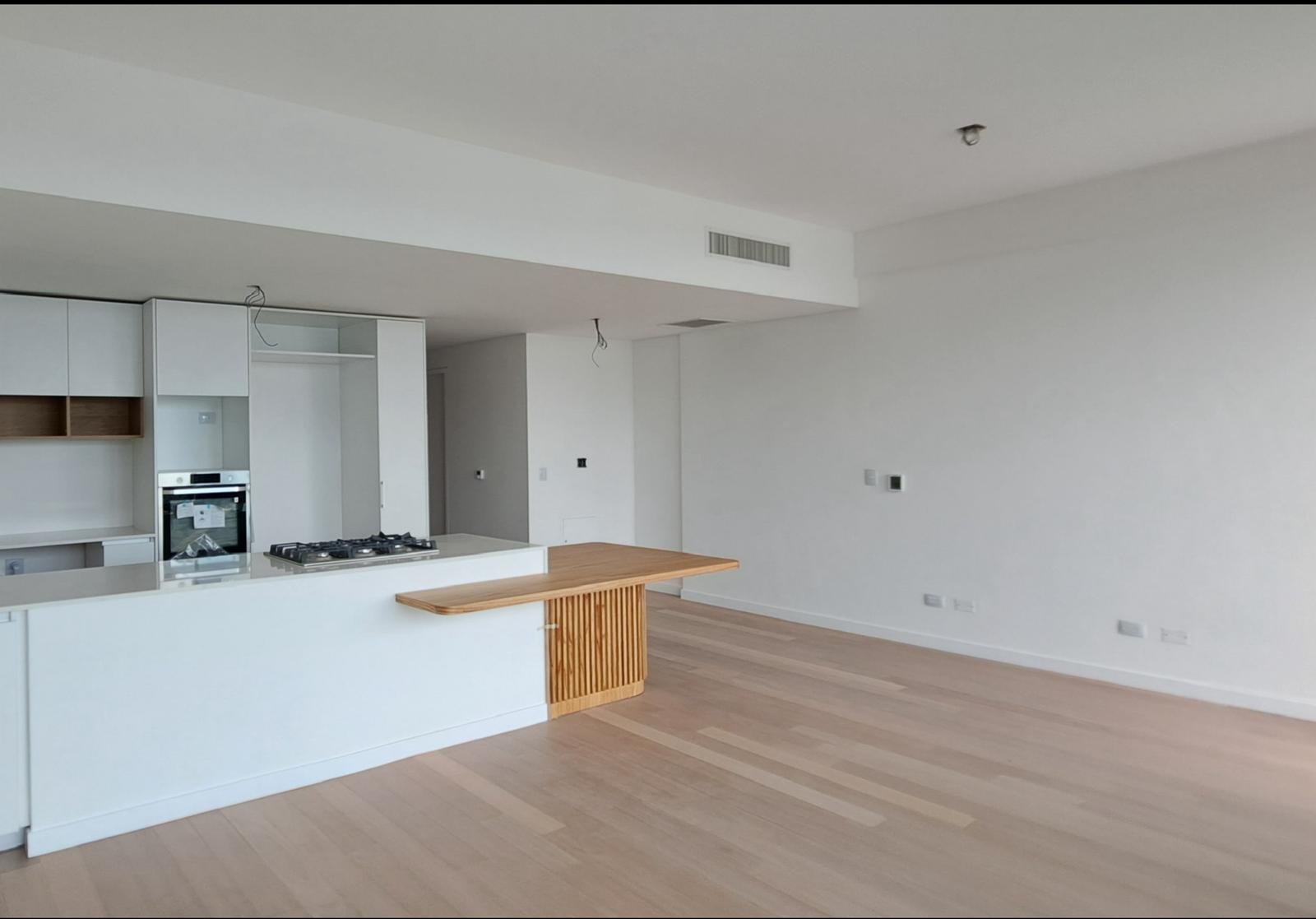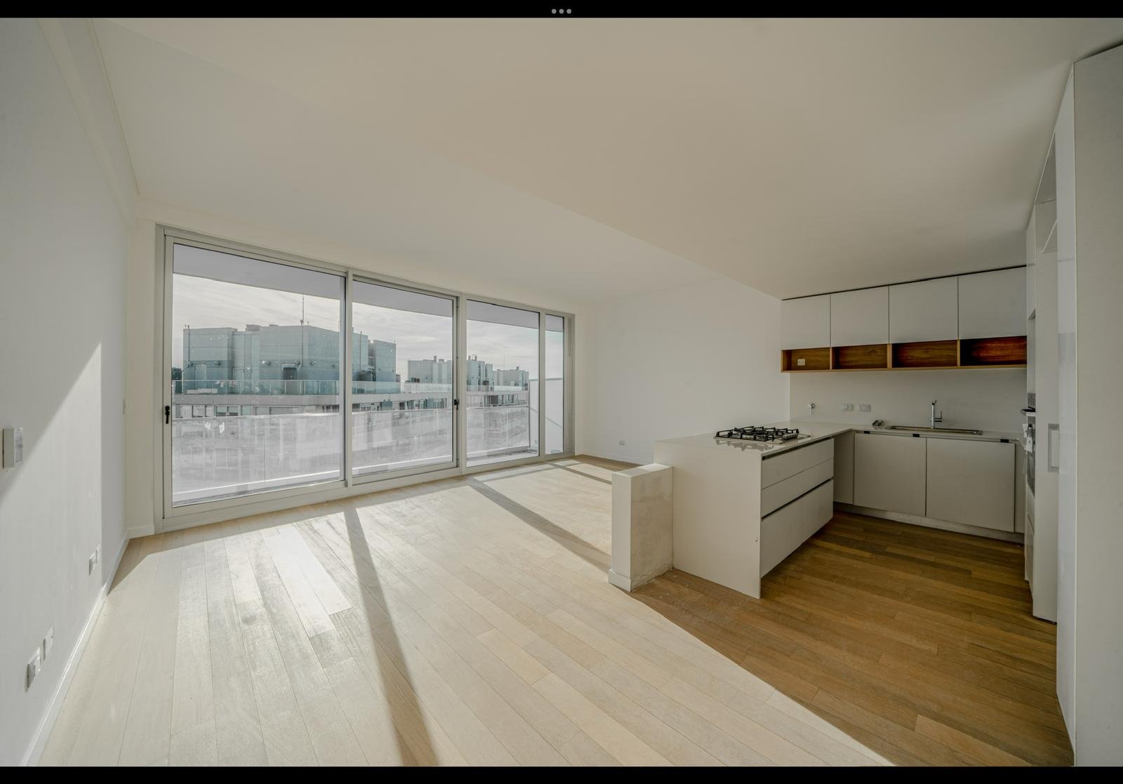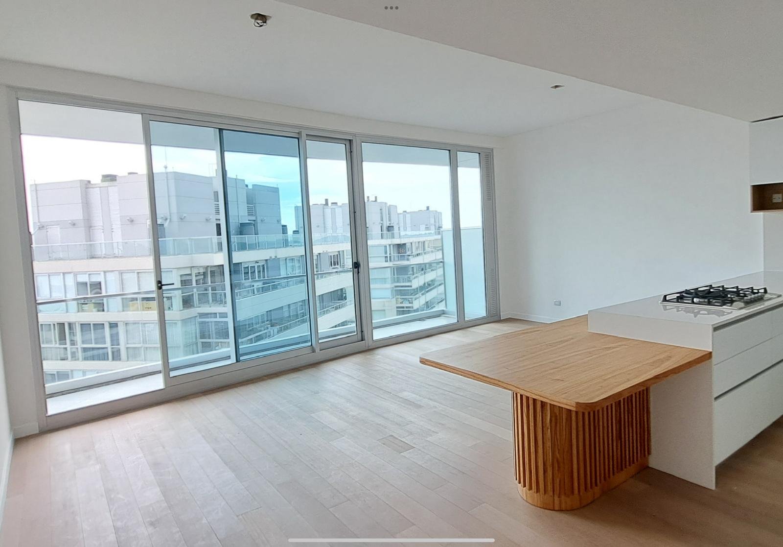 19: Living comedor con salida al balcón terraza, cocina integrada y toilette de recepción.