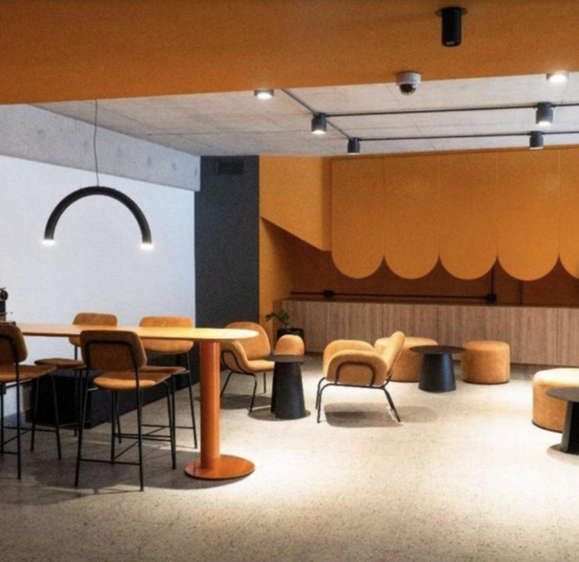 >Coffee place + Auditorio + networking rooftop + meeting rooms + bike-friendly